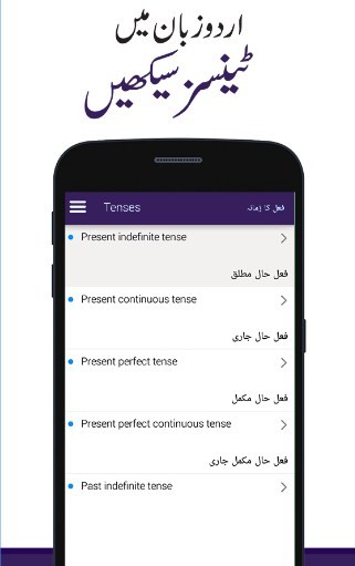 English Tenses in Urdu is an Android app that teaches to facilitate those who want Basic English Tenses learning in Urdu and who consider themselves weak in this regard.