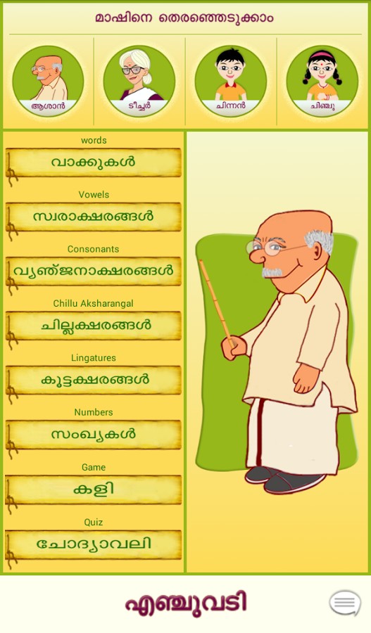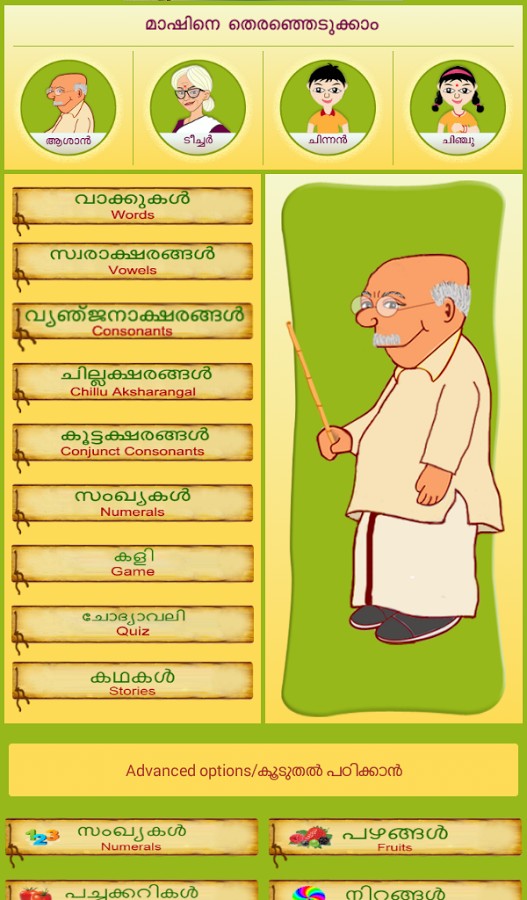 This endeavor is a humble step to transfer the warmth and the positive energy of our mother tongue towards the next generation. This app will transfer the same positive energy which you used to receive from the traditional 'Asan Kalary' during your childhood.