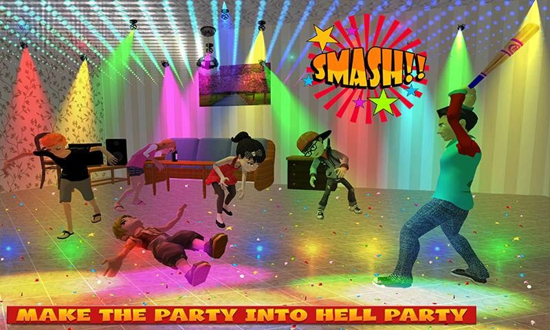 Evil Neighbor Boy Party Destruction Game Features: