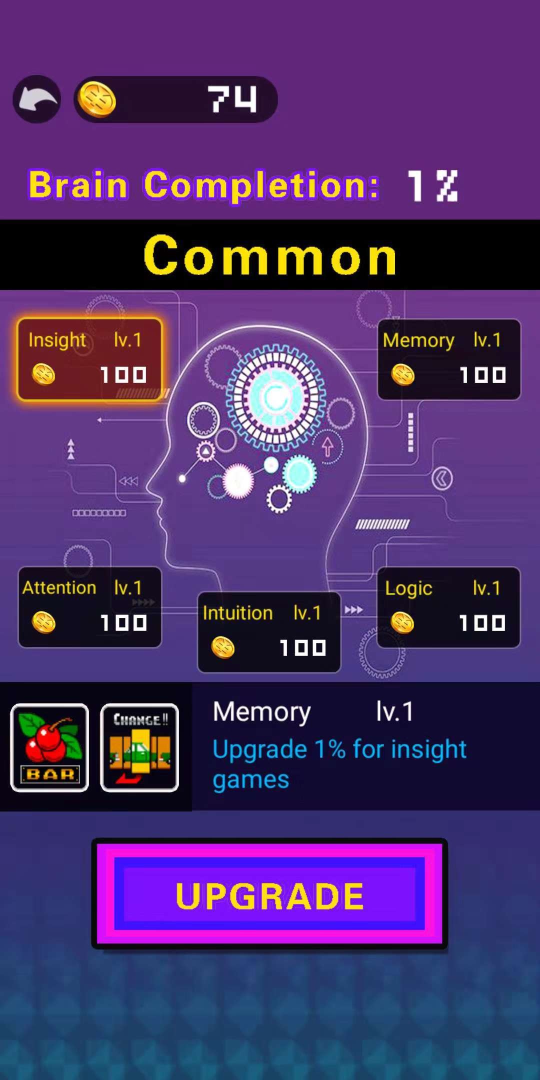 According to the rules to complete the game goal score, 100 points score can get a gold coin, use the gold coin to develop your brain, see who can develop the brain higher!