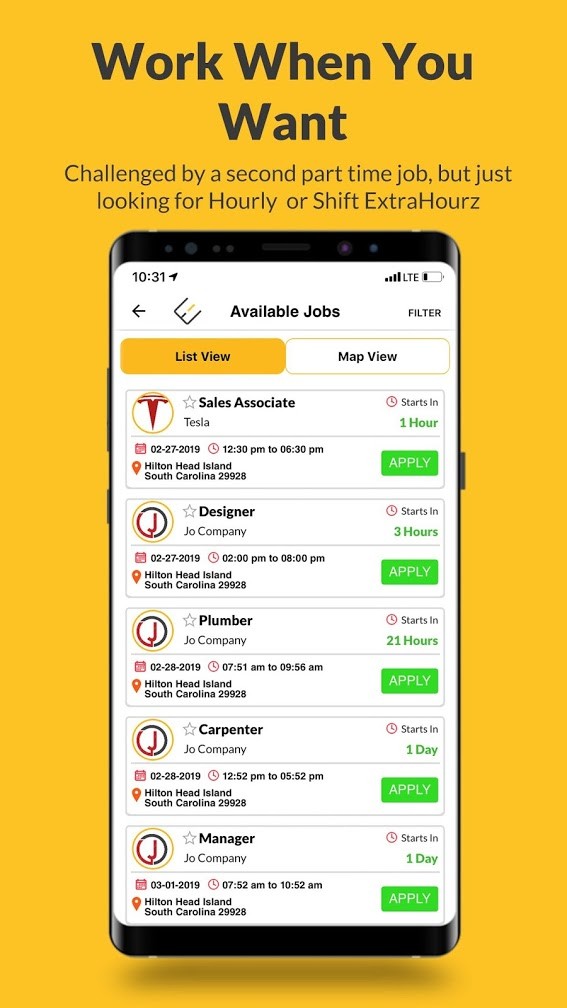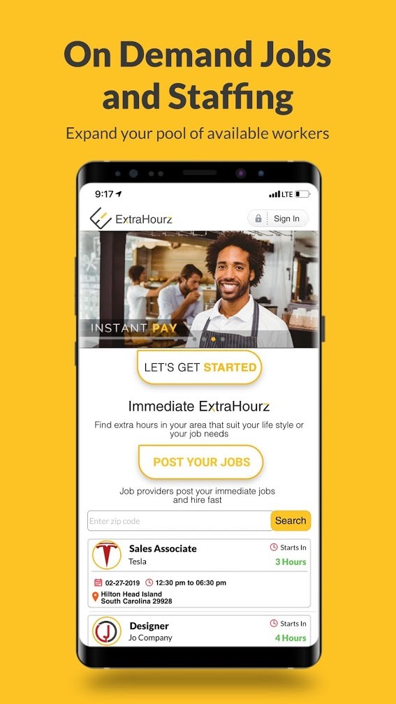 ExtraHourz is the platform for finding immediate hourly or shift based nearby jobs now. It is a simple location and industry based job mobile app connecting you, the job seeker, with business owners seeking eager local workers for short term immediate job openings. part time job finding apps It is the on-demand location-based app for today’s hourly workers and the job providers who rely on them. This app is compatible with all of your devices.