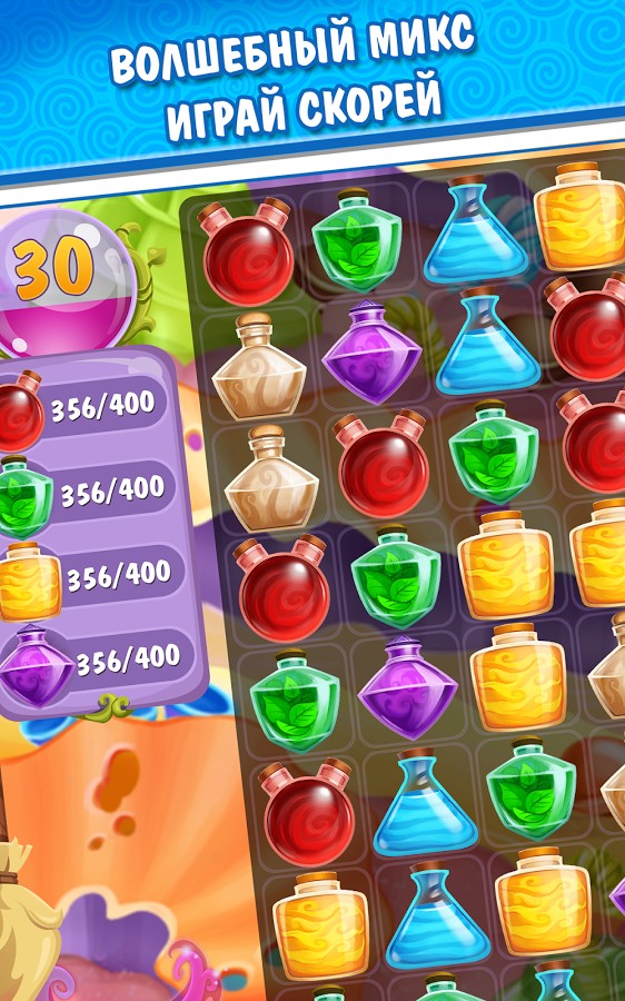 ★ Improve buildings that will help to mix three potions in a row and add extra moves.