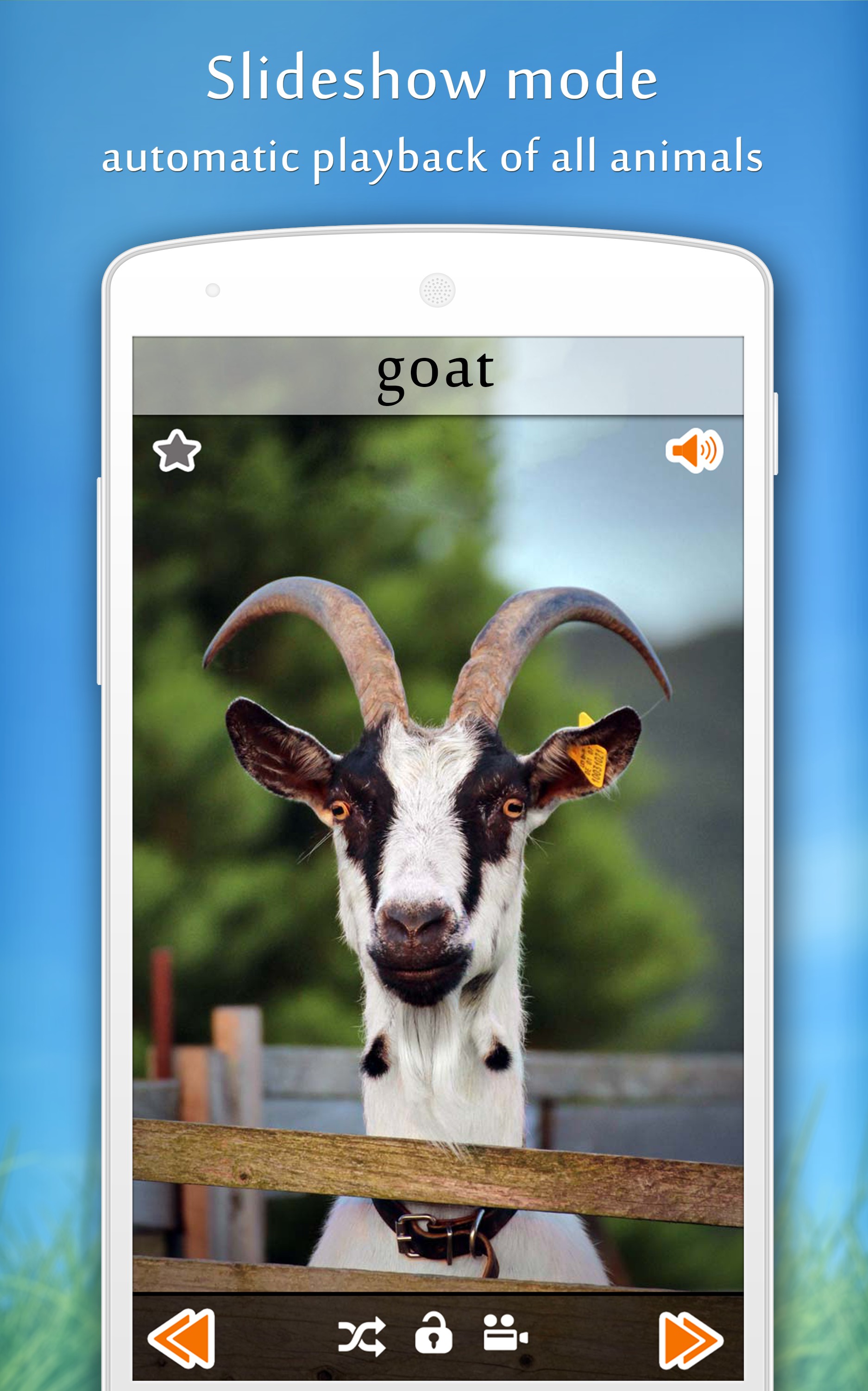 Farm Animal Sounds application contains sounds and photos of farm and domestic animals in the world.