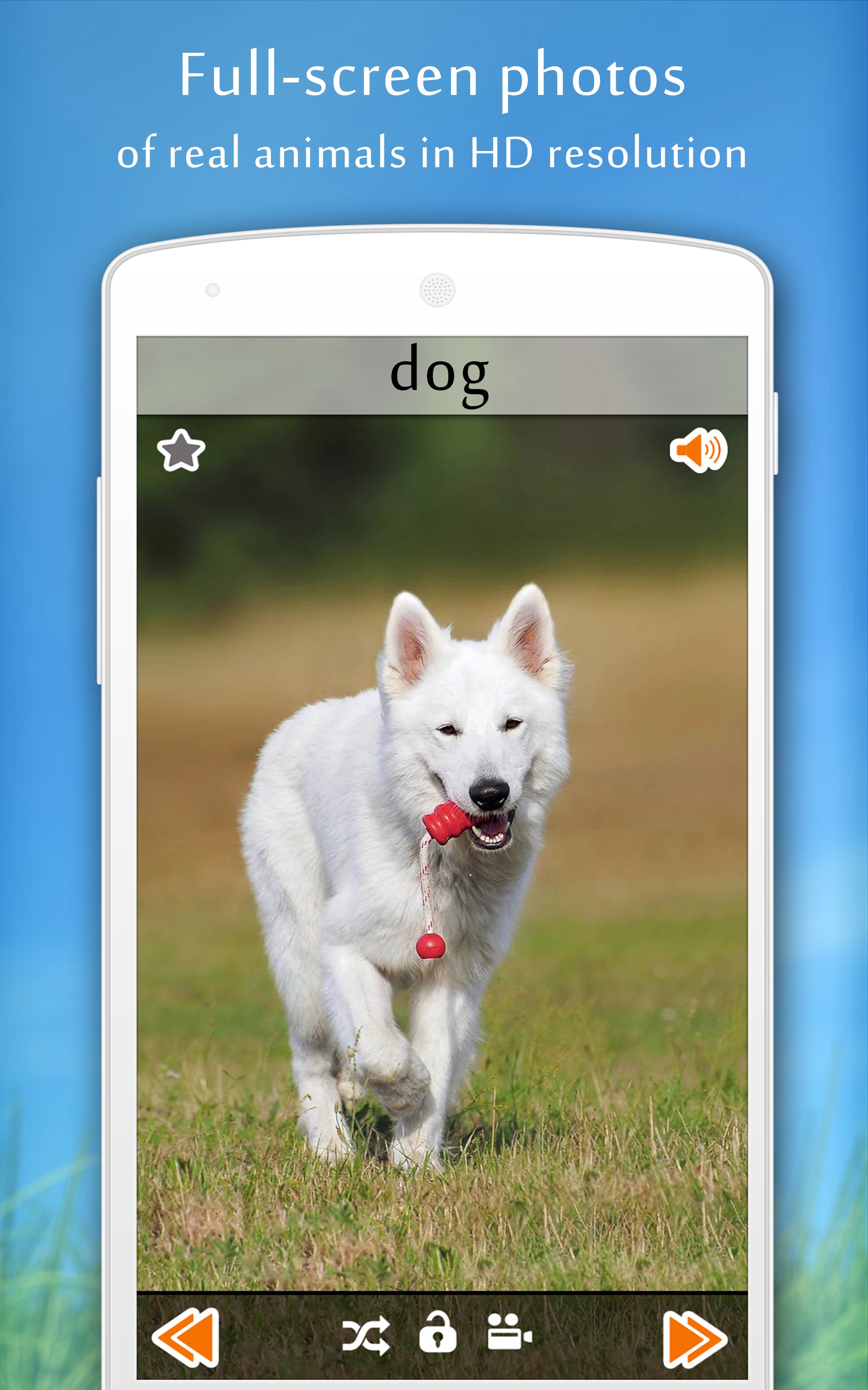 Using the application is very simple. Just use the buttons or gestures to switch between animals and impress wonderful animal sounds.