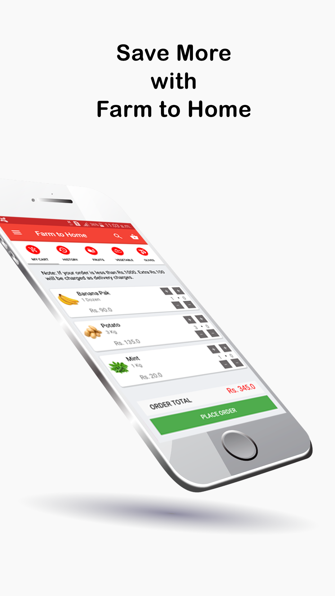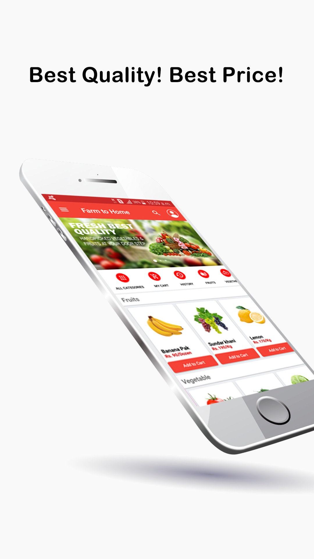 You don’t need to go anywhere just sign in our App and choose your desired item, your ordered items will be at your doorstep the next day before 12 pm. So order now and enjoy the juicy fruits and fresh vegetables!