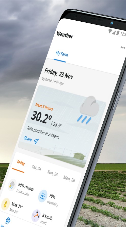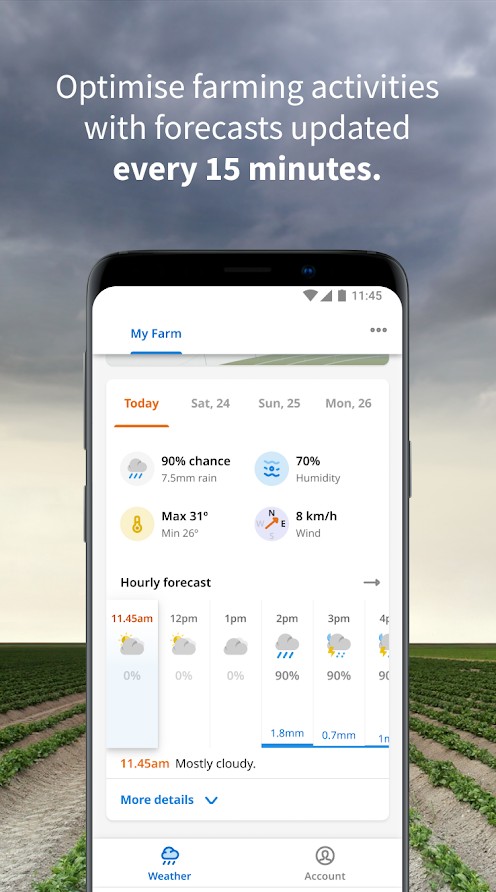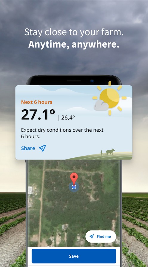 Use your phone's location to set up a reliable forecast and deliver a hyperlocal and accurate forecast of your farm, down to a 500-meter radius.