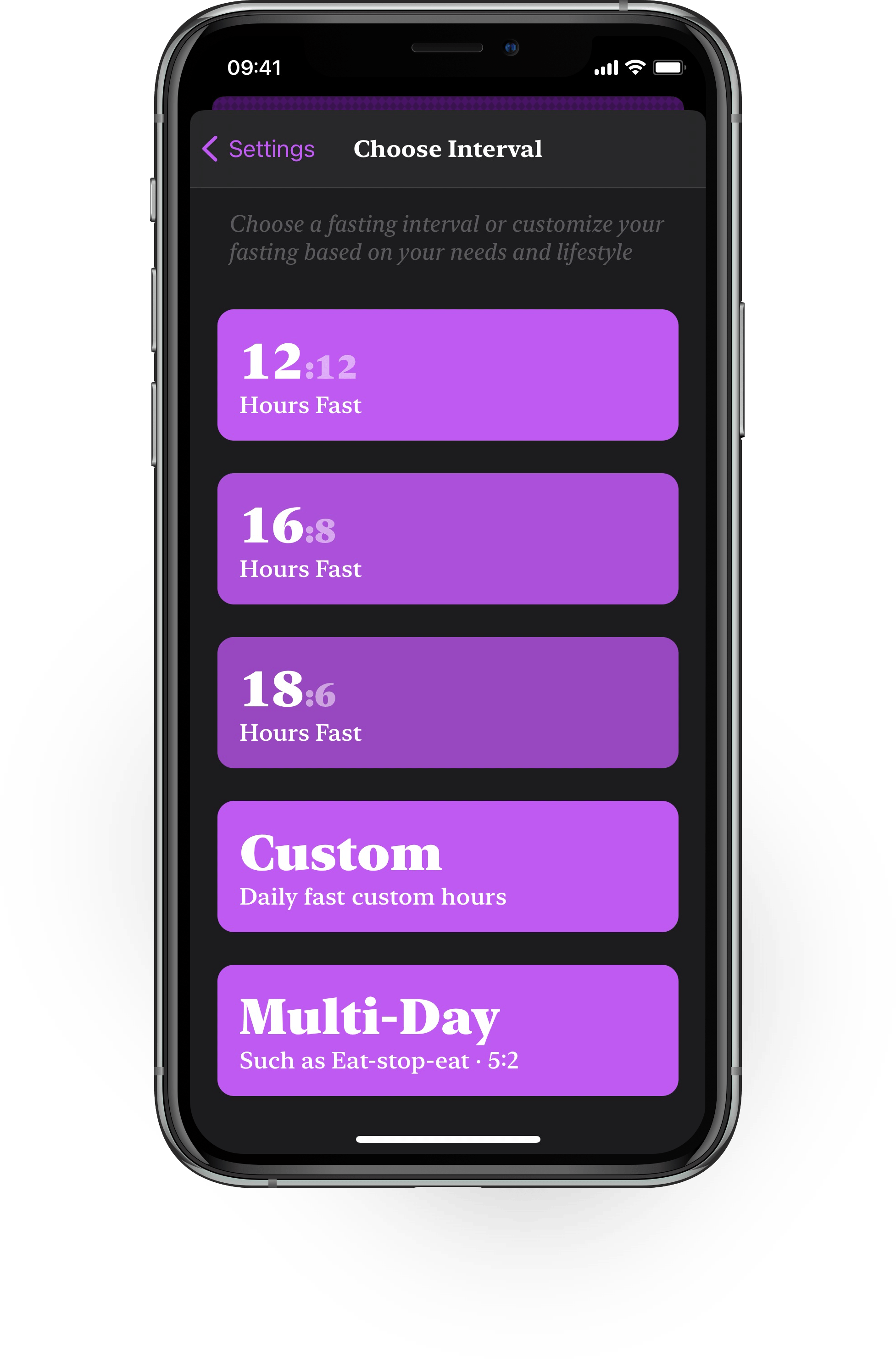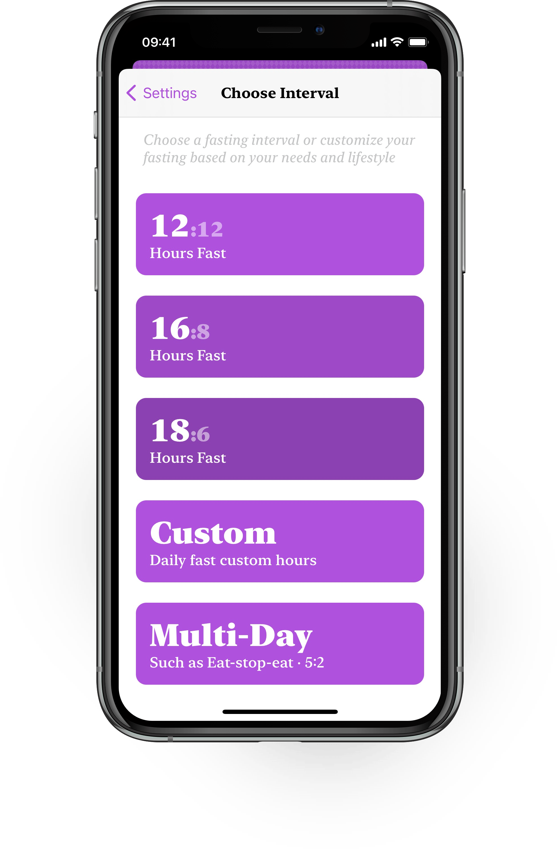 Fastival is designed to be easy to get started with. There is no onboarding and no collection of user data. Instead, you can choose how you want to fast and get started right away.