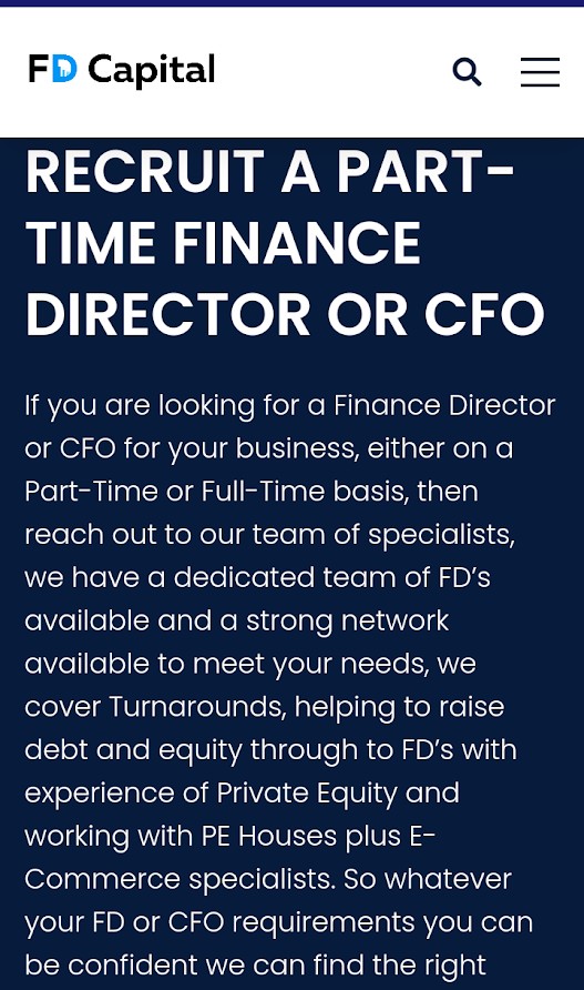 Part-Time FD’s and CFO’s our idea being to bring the skills and experience that finance directors have gained in larger corporates and plc’s and make them available to SME’s on fractional time basis.