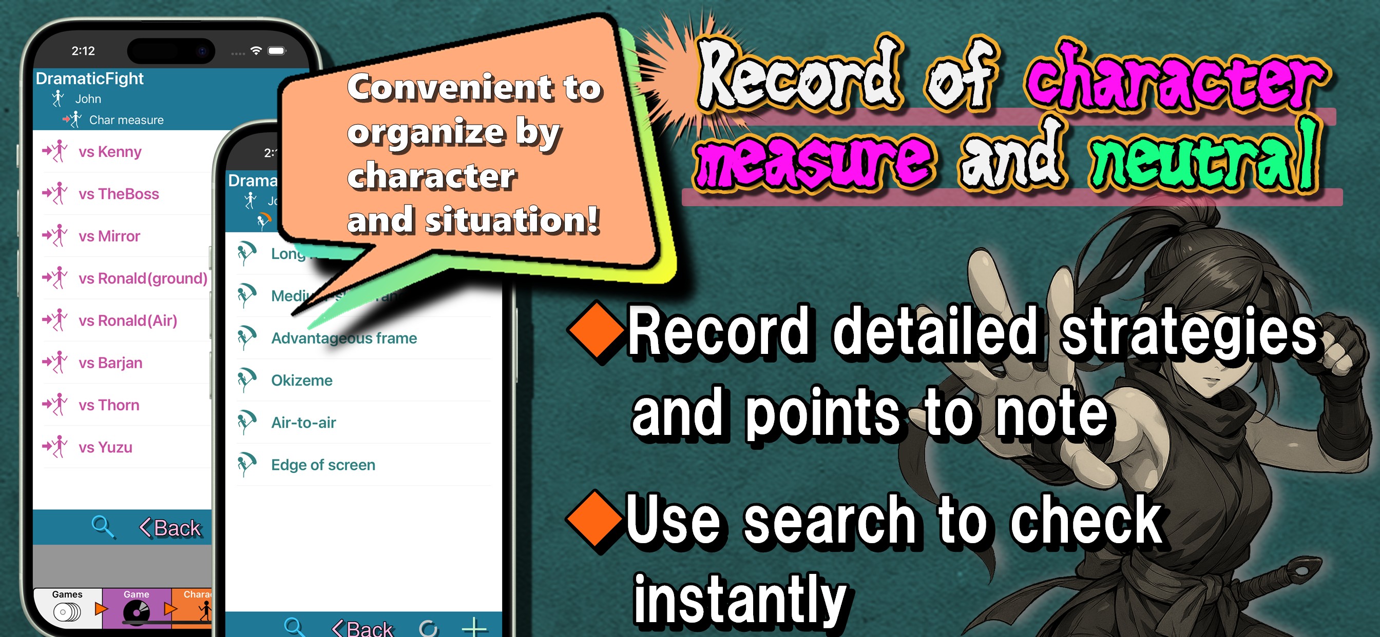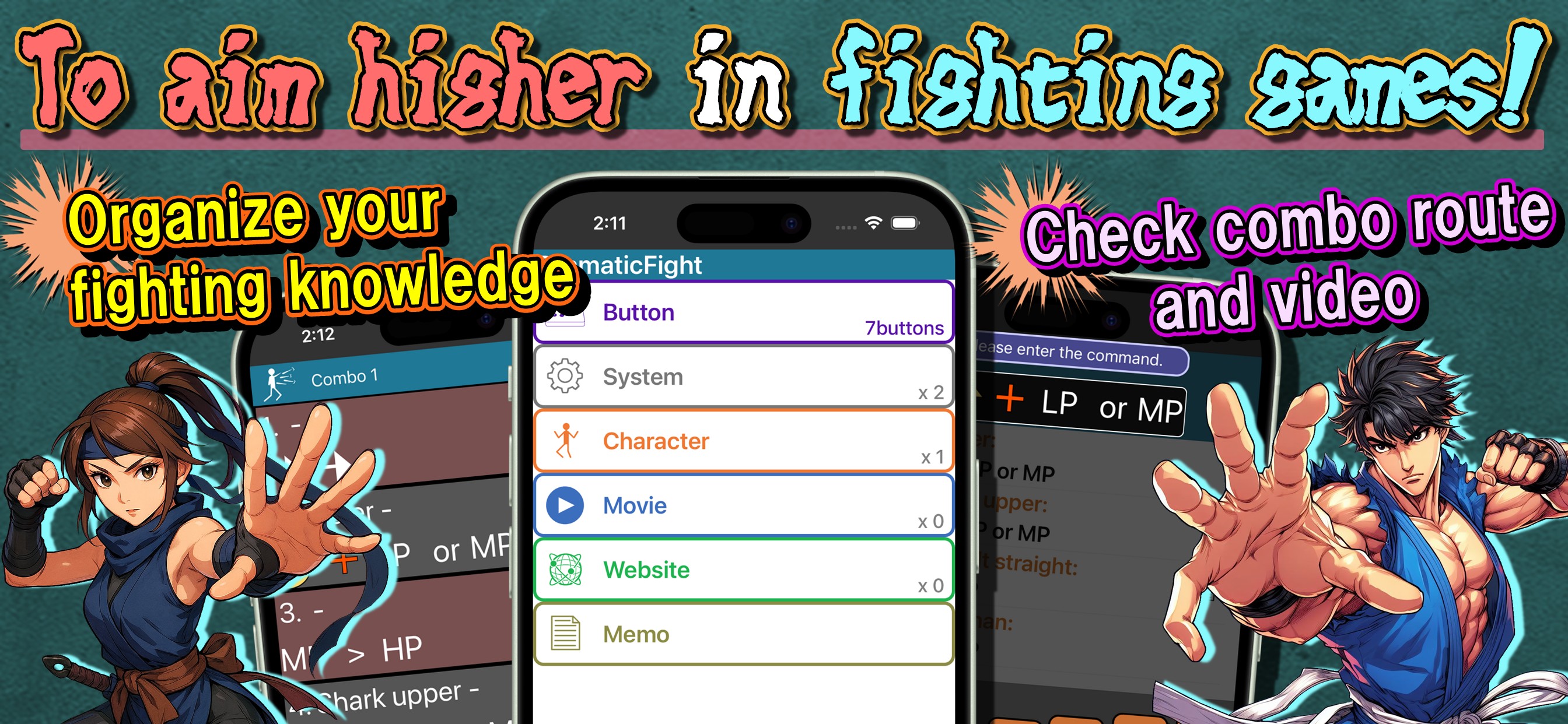 Easily organize fighting game information on your device!