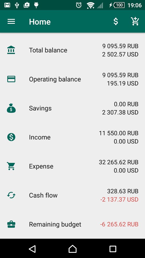 - Viewing the total balance of money and cash flow.