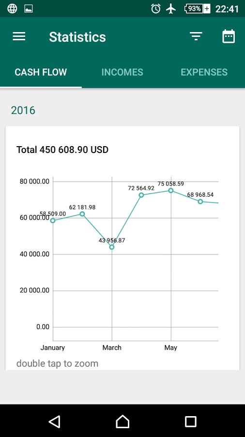 - Viewing detailed income and expenses for each category.