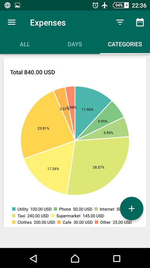 - Customization of categories of expenses and incomes.