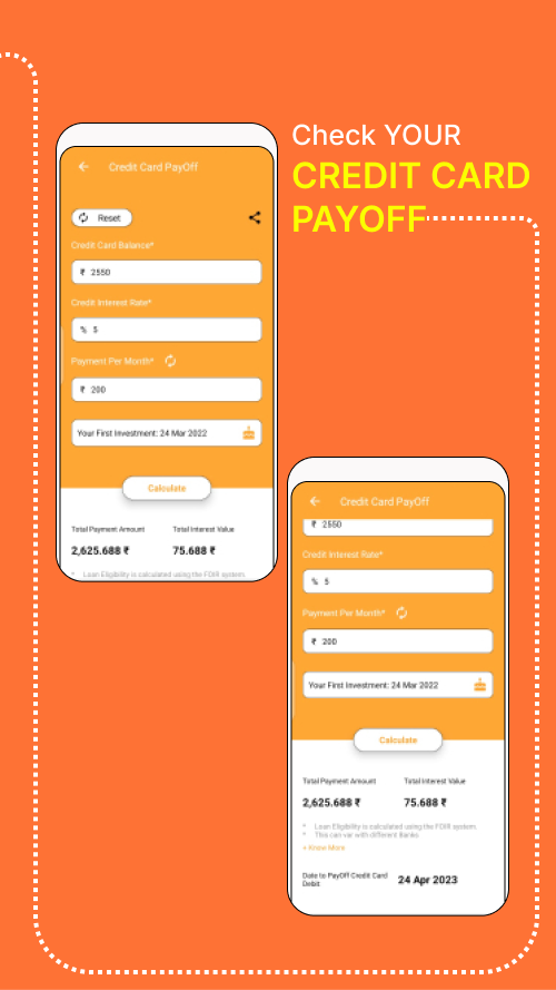 Have a check of the total Payment amount, Interest value and the date to Payoff Credit Card Debit of the credit card.