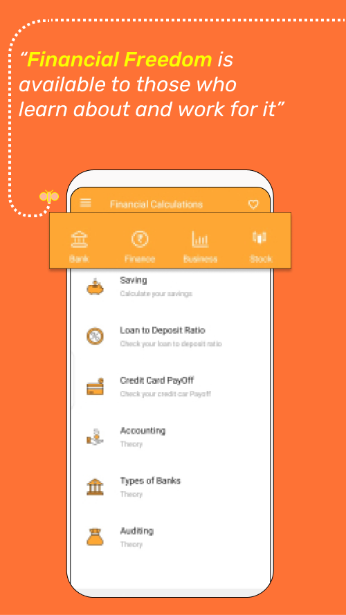 There are two aspects offered in the app the first is the calculation related to finance and the second is the theory for Finance. For every calculator there is a theory for that related calculation.