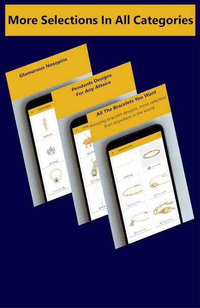 We list real jewellery that you can buy online from the jeweller’s website without leaving the app. What you see are not just images of jewellery designs but real gold and diamond jewellery from the top online jewellers in India. You can select your jewellery, from thousands of jewellery designs from multiple jewellers shown side by side. This allows you to select the best gold and diamond jewellery designs without having to switch between different jewellery sites.