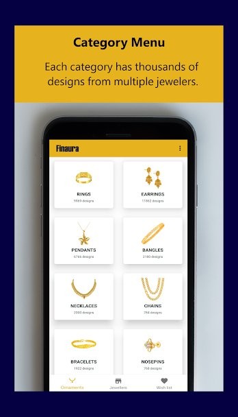 Finaura showcases jewellery designs in all the major categories from multiple online jewellers in one place. The jewellery design category supported are: