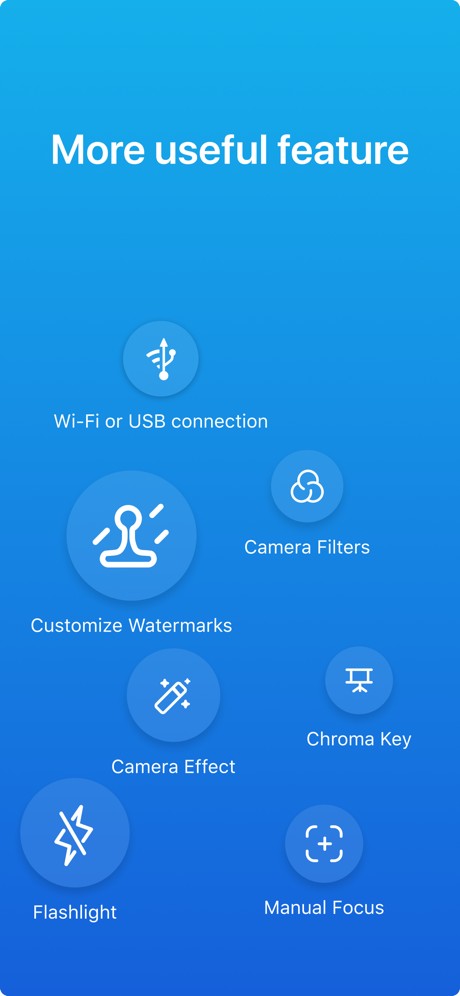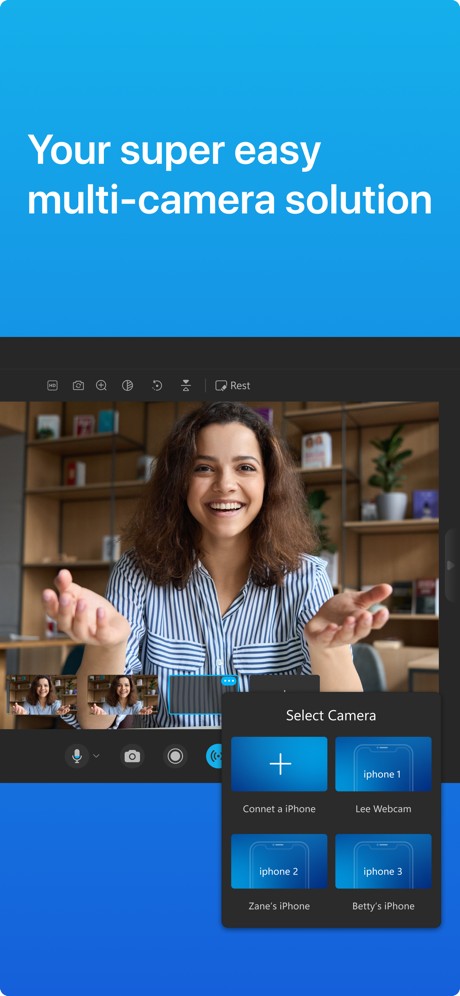 - Multi-Camera: Connect multiple iPhones and iPads as webcams. Switch freely between multi-camera.