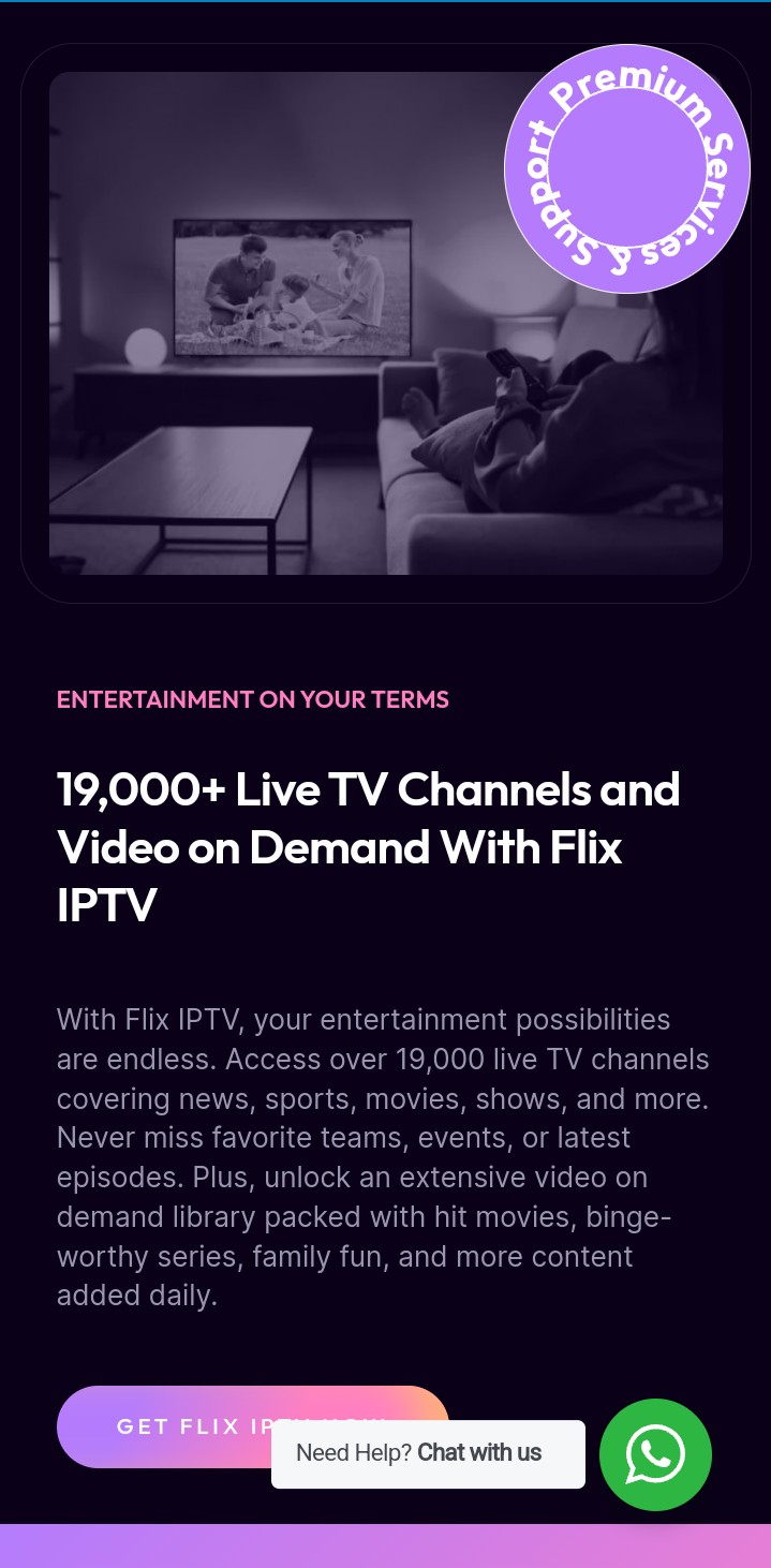 Flix IPTV was founded in 2018 by a team of home entertainment enthusiasts looking to provide exceptional IPTV services to customers around the world. We specialize in curating and delivering reliable streams for live television, video-on-demand catalogs, and worldwide content to any internet-connected device.