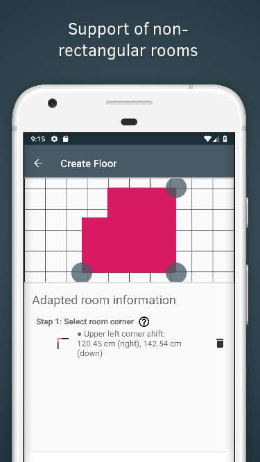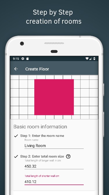 • Display of the length, width and room position for every floor section (numerical and graphical)