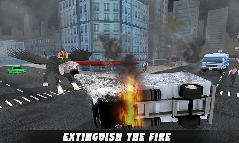 Roaming in the city and find the task location to perform amazing activates to save the civilians of the hometown. Use your special water power to extinguish the fire and save the civilians of the city. Sit on the enigmatic creature and roaming in the fog horror city. Use your wing to fly in the air and move from one point to another.