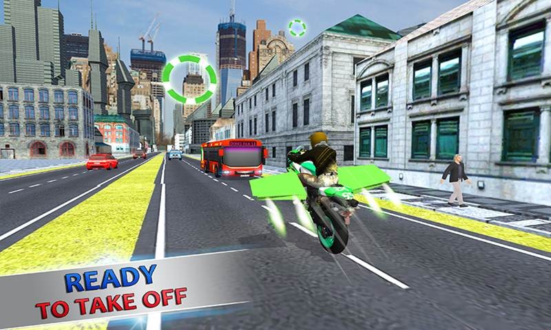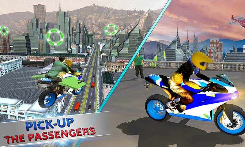 Futuristic Flying Motor Bike City Transport is specially designed for all bike racing games lover and flying vehicles simulation fans. Fly high in the sky with flying motorbike and drop passengers from one place to other in the grand city. Ride your motorcycles through asphalt roads and shoot to smash all the sky balls. Try air stunts to become the Moto riding and smashing champion in the gaming world. Fly bike like airplane pilot in this super flying motor bike city transport simulator.