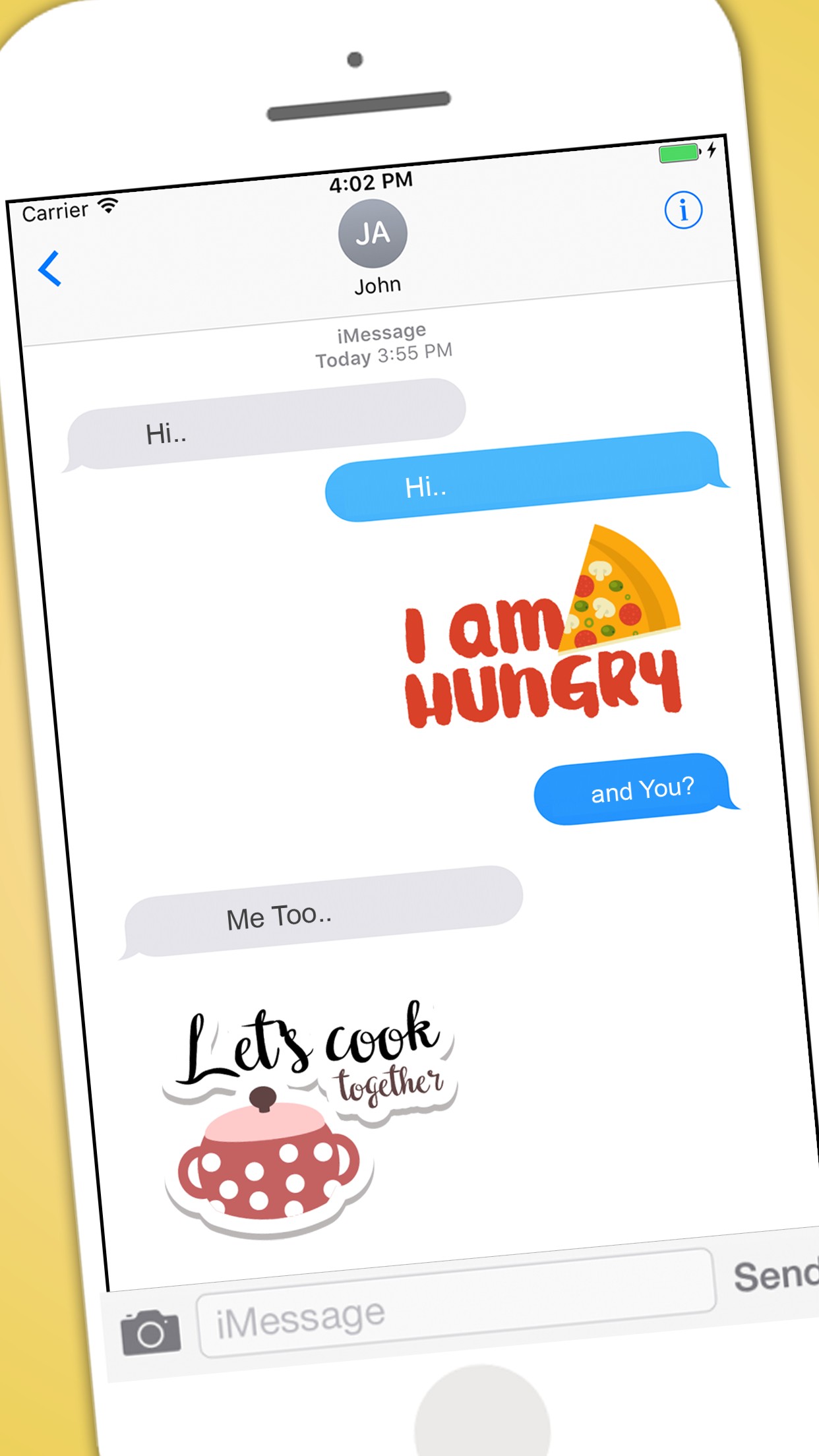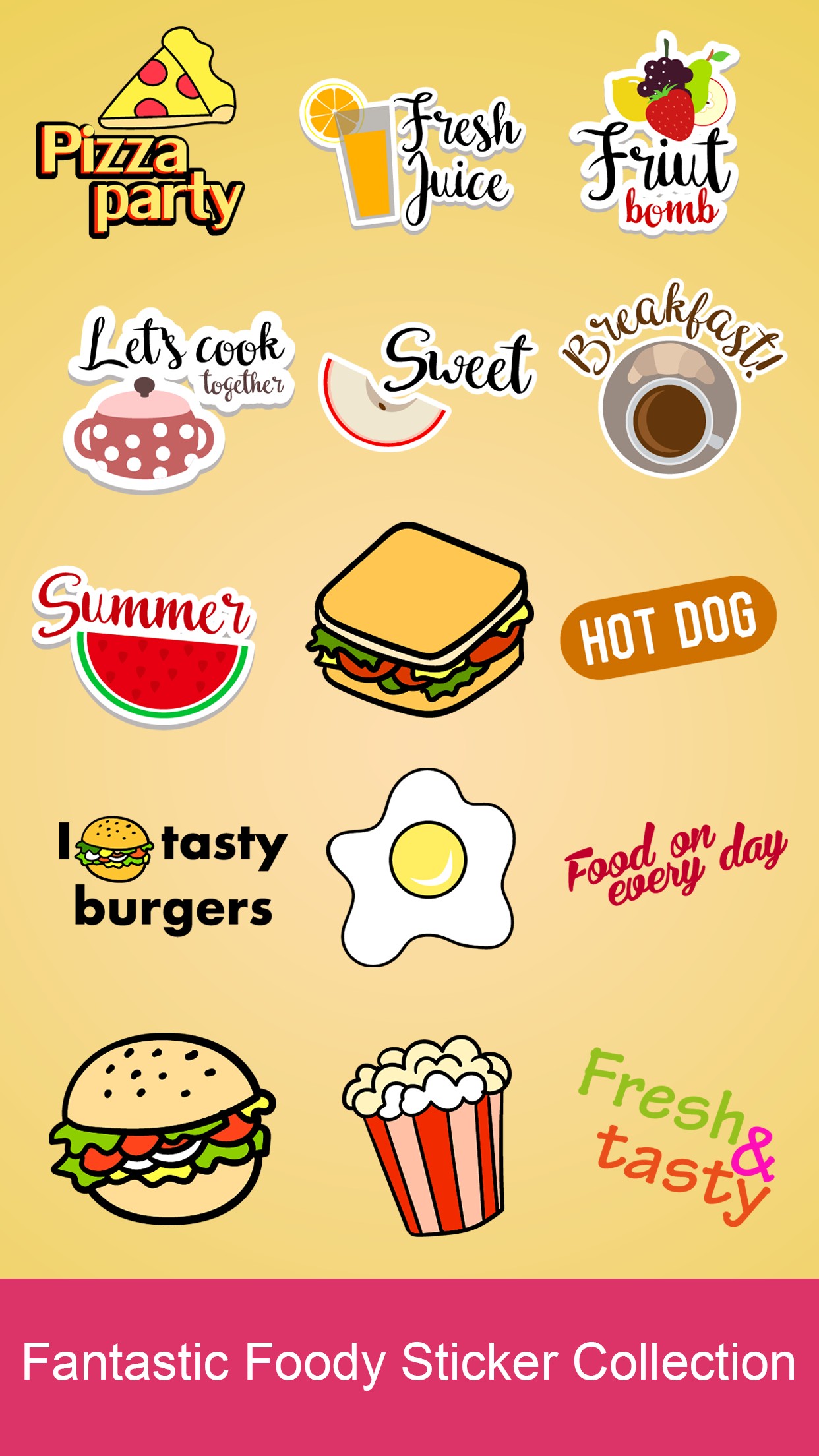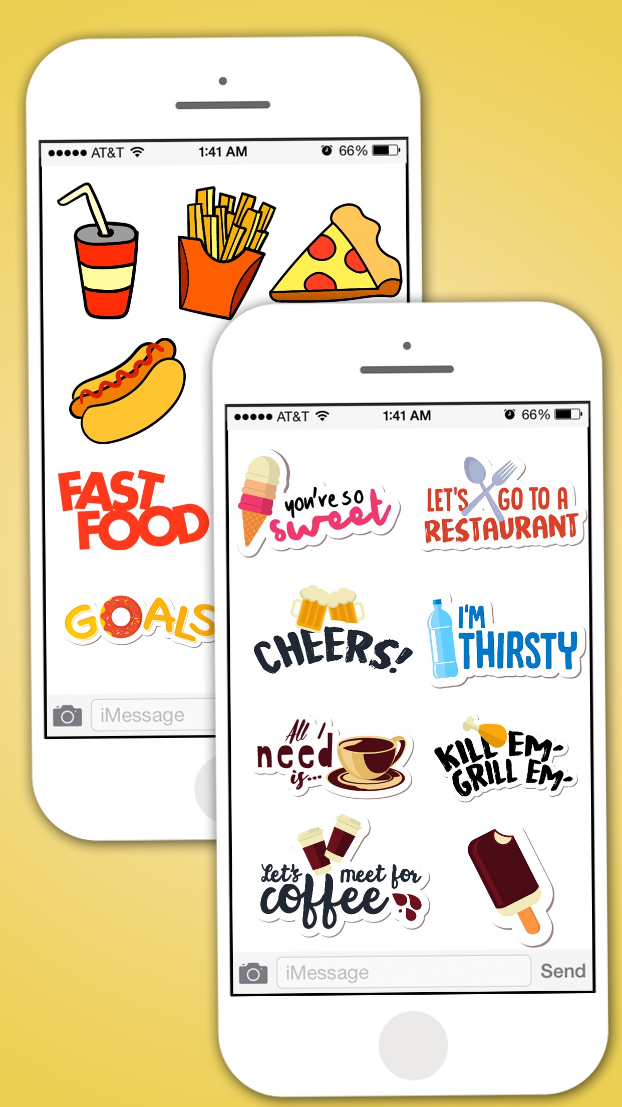 A huge collection of food stickers for imessage. You can message to anyone when you have take meal, breakfast, dinner etc.