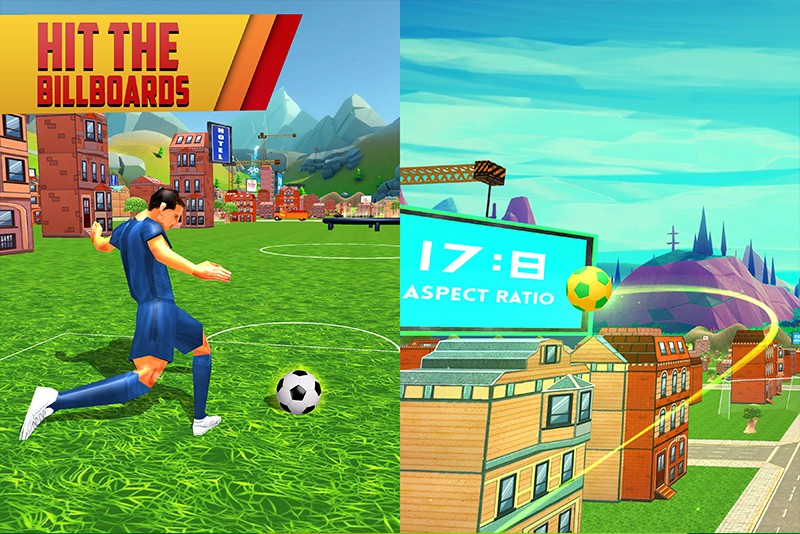 Football kick Hit World is challenging game with interesting gameplay where you will play as soccer boy and ready to get pleasure with a fusion of football game. In this game three different customization are available like Tilt, Bounce and Power. You have to choice whose customization are better for you the choice is yours. This is an amazing game with different environments like city, jungle and snow modes to play with. Different environment having different objects. In snow and jungle atmosphere you have to hit the ball in Different Boats, Different Animals, Tents, Santa, Snow Man, Igloo, Bushes and Stones to make goal. Multiply your score flick the ball through the rings by hitting the different objects like Jumping pad, Billboards, Vehicles and buildings. Reaches towards your goal and on efficient helps you to make more score. Challenging missions are ready to blast the game in sports gaming world with the help of kick shootout skills and different environments.