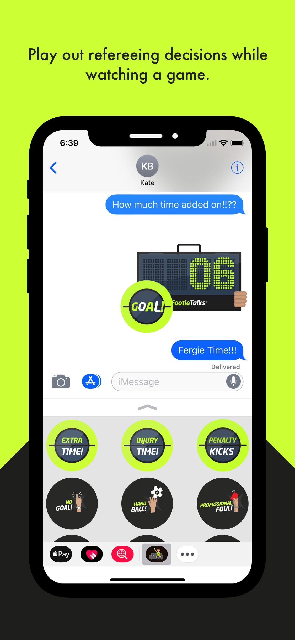 Ref the game from the comfort of your sofa and share the banter via iMessage with FootieTalks® Sofa Referee.