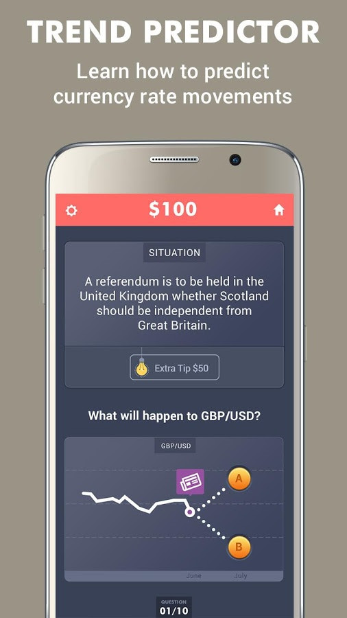 The official and original Forex Hero currency trading game. No more boring forex materials, no more wasting time on dry theory. Just the strategies and tricks that work. If you want to predict currency rate movements by scanning through news sites, then this is the app for you. Forex Hero is the most effective and motivating way for beginners to master forex trading and economics.