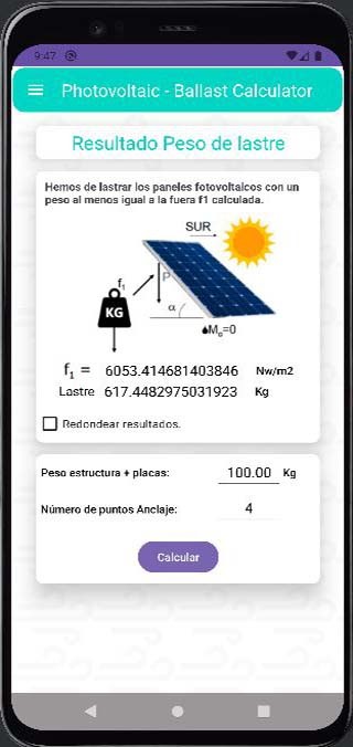 Calculadora de lastre para instalaciones fotovoltaicas.