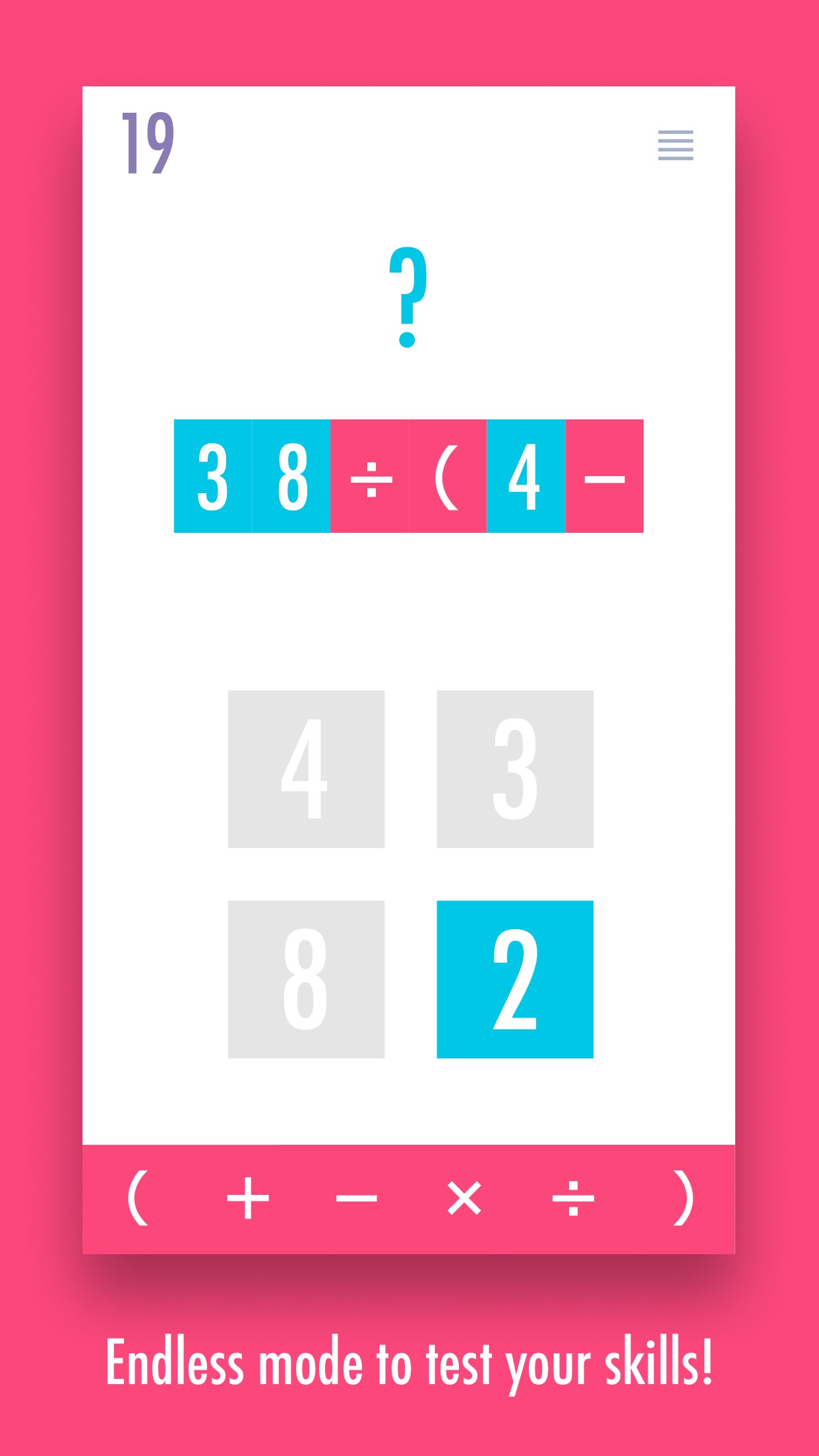Fourte is the math game where you play with 4 given numbers and the basic operators to get the desired number.
