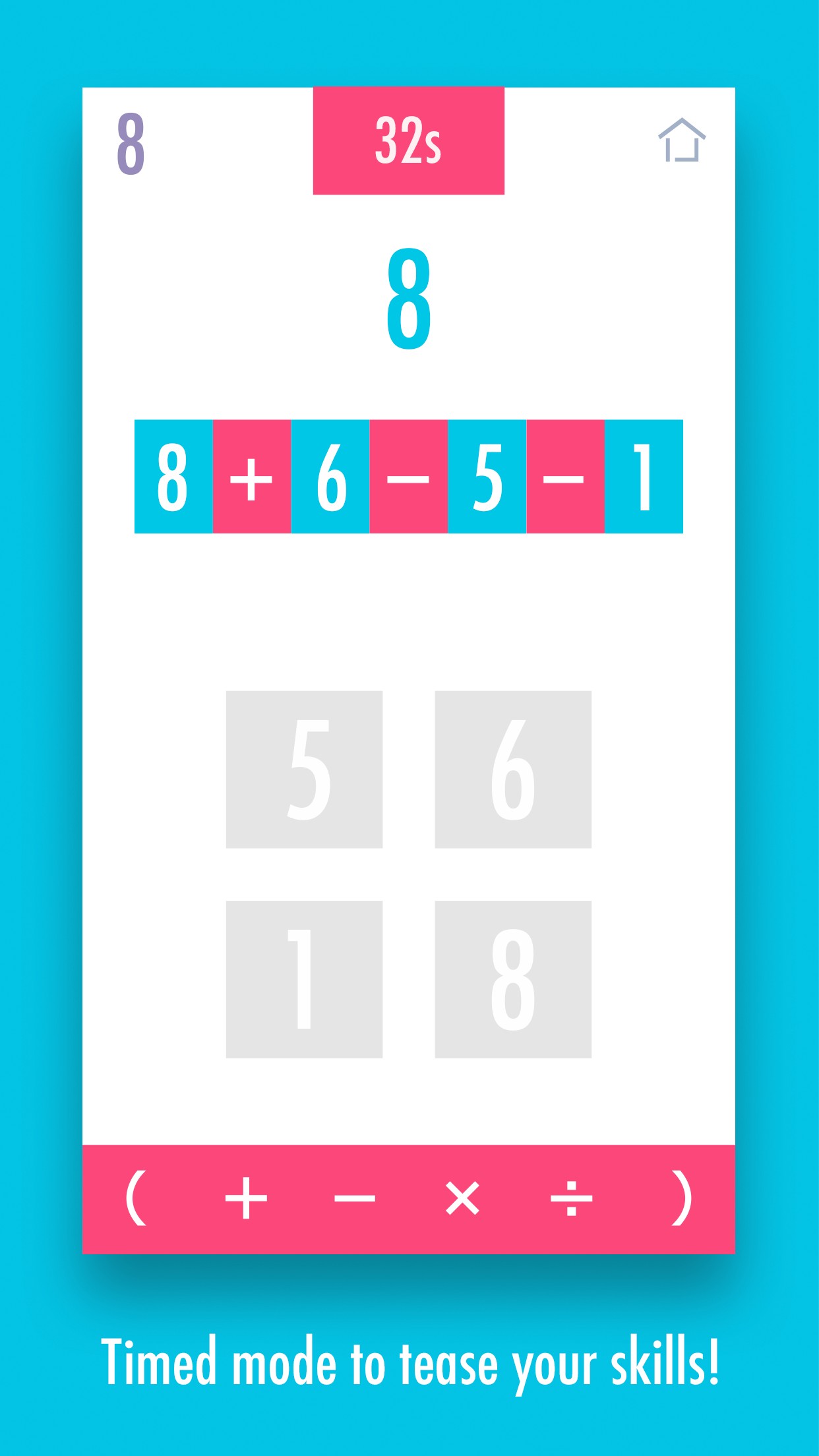 You will be asked to make 8 using 5,6,1 and 8.