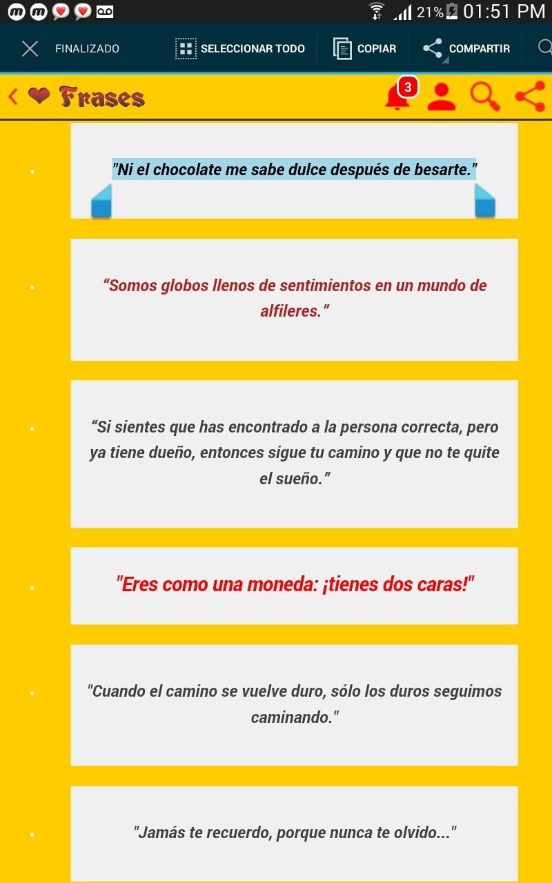 Por otra parte, podrás compartir las frases con el resto de tus contactos a través de cualquier red social, Con miles de opciones diferentes que se van ampliando en cada actualización.