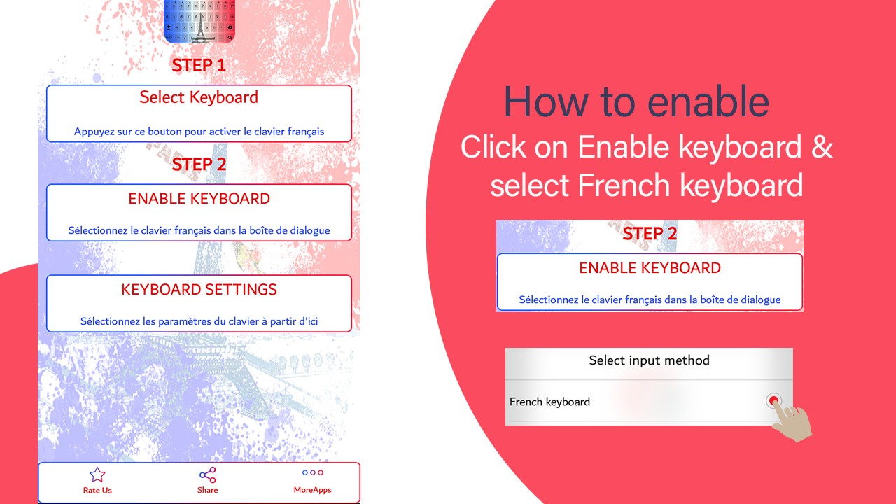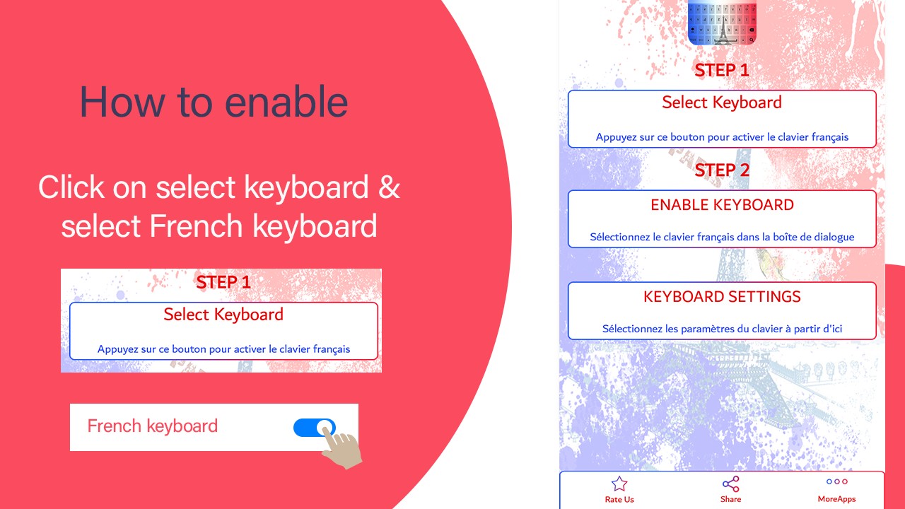 Easy French English keyboard is complete French alphabetic keyboard with all the French letters French alphabets and fancy fonts and French special characters. New French Keyboard 2018 is two in one keyboard you can also type in English at the same time without changing French and English keyboard. Easy French typing keypad is very easy to use and free to download for French speaking people.