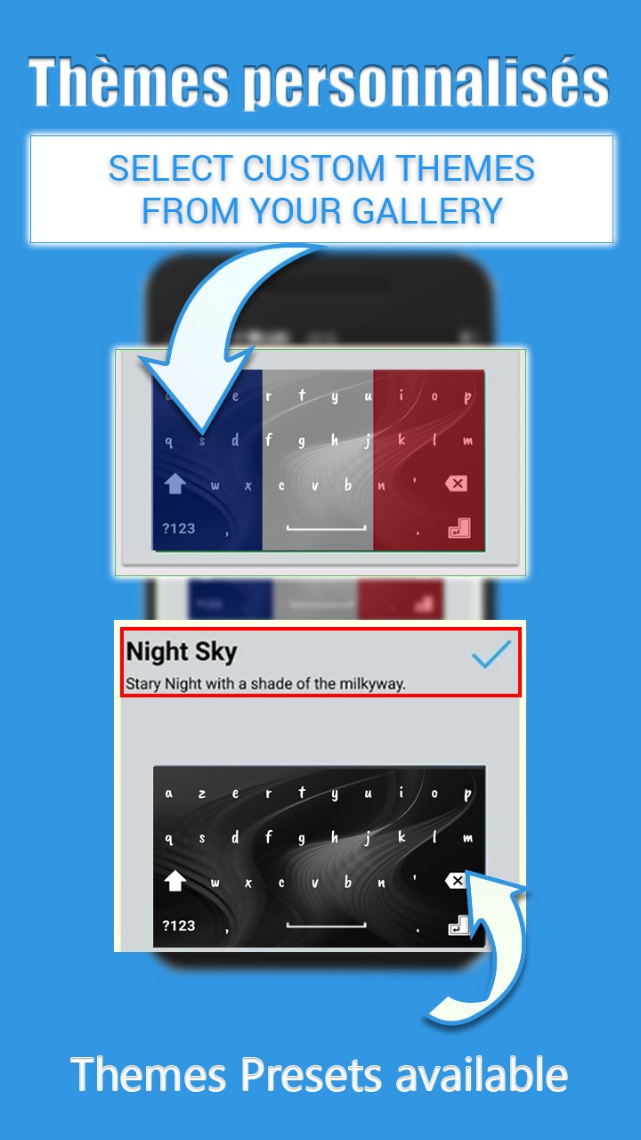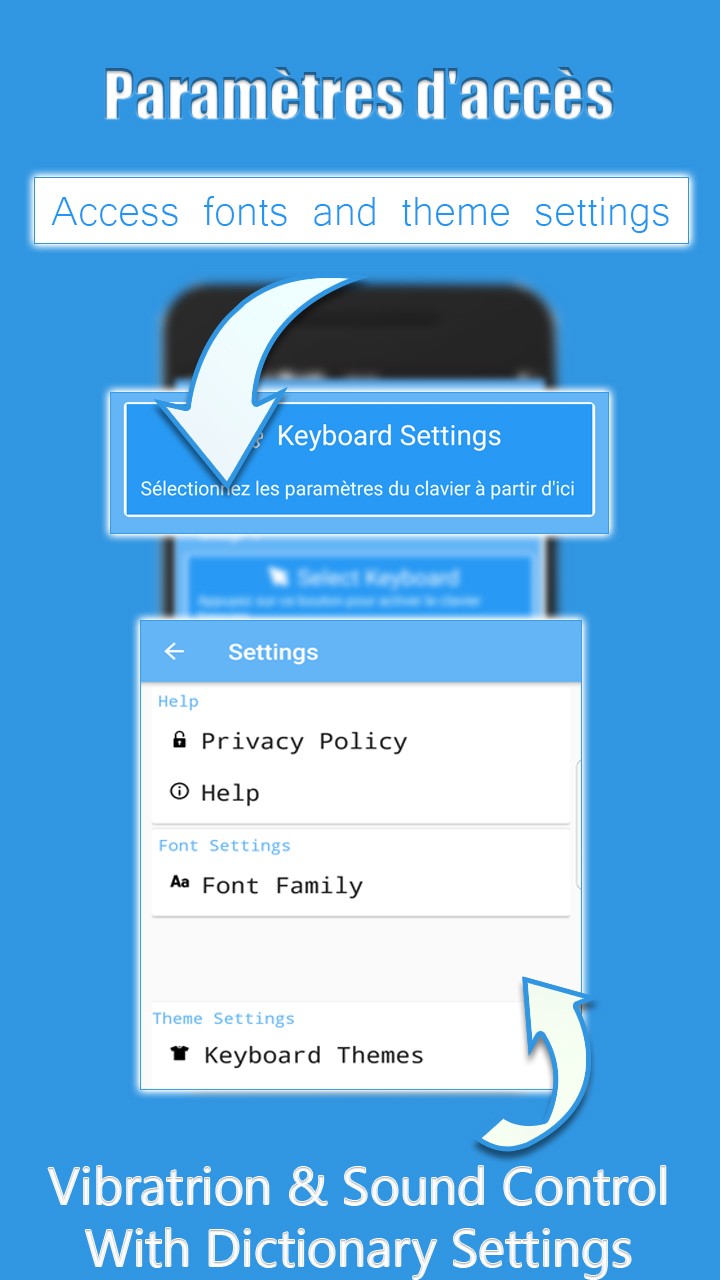 French customized keyboard allows a user to type and write in French language. Do you find it difficult to type and writing French words in your mobile custom keyboard? Looking for fancy French touch keypad App. Then this French touch keyboard is best and easy French and English language keypad for you. Best French keyboard is the easiest keyboard to write in French language. Using fast French keyboard you can write messages in local French language. Best keyboard is designed in different themes and different styles.