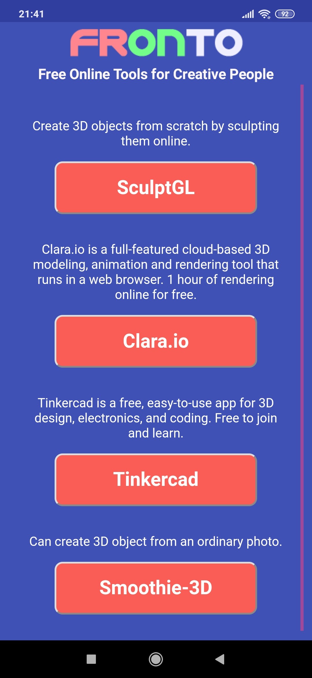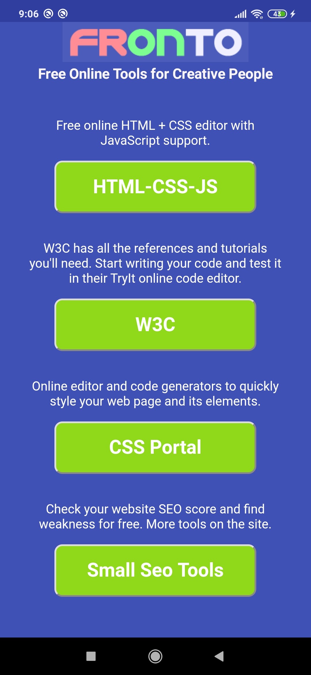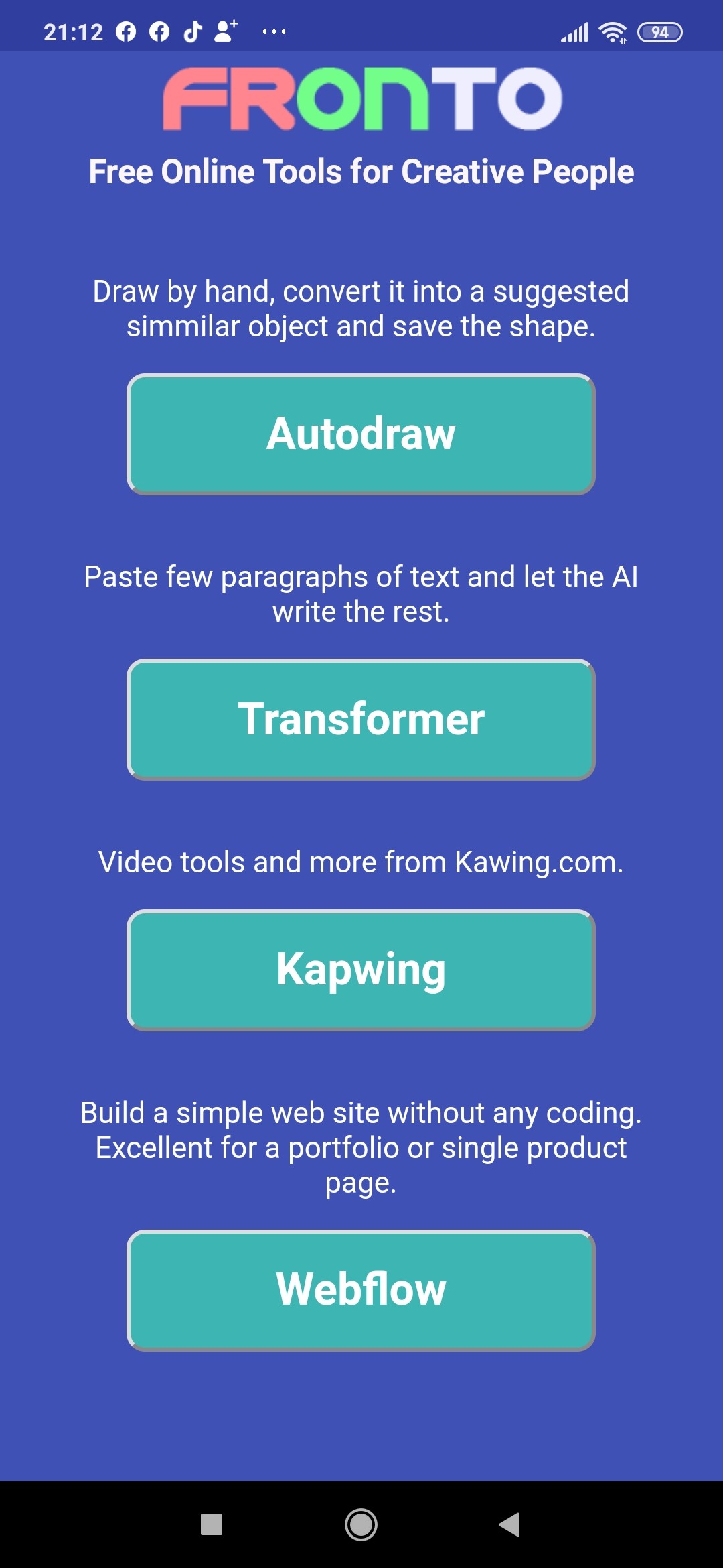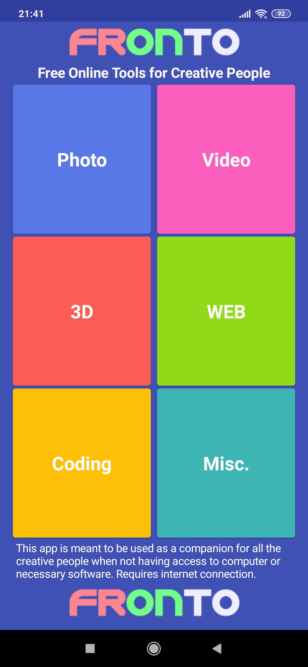 Free Online Tools for creative people is a dashboard for a creative person when not having access to a computer or necessary software and need to create or edit something fast, on the go. This app is here to boost your productivity!