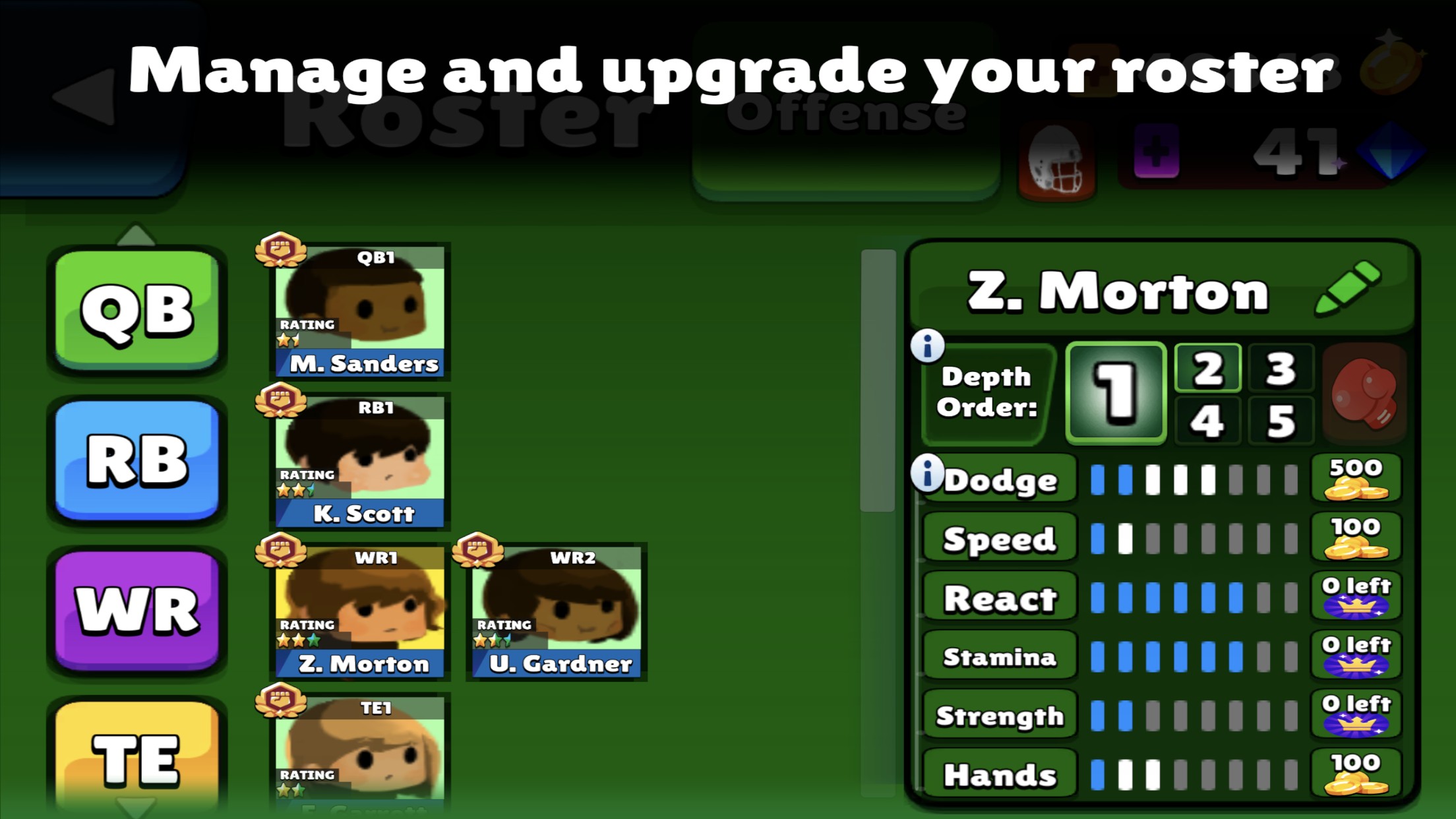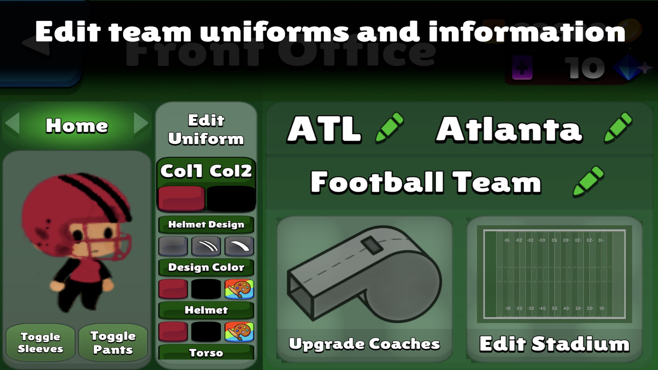 Frontyard Football is an arcade-style American Football Game suitable for all ages. Dive into the complete Football gaming experience by either taking charge of an existing team that is undergoing a rebuild or embarking on a fresh journey with a brand-new team. Personalize your team's details, stadium, uniforms, and much more! Earn currency that can be used to upgrade your players, purchase items, and recruit new talent. Engage in games against varying difficulty levels, and tailor every aspect of your players, from their gender and appearance to their clothing and names!