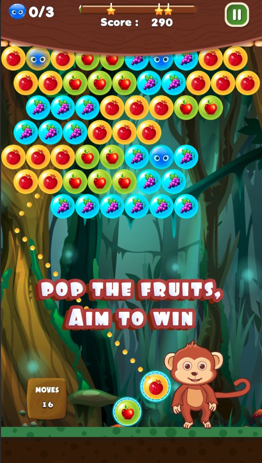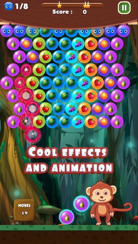- Release finger to hit, if you hit at fruits with the same color, they will blast and fall!