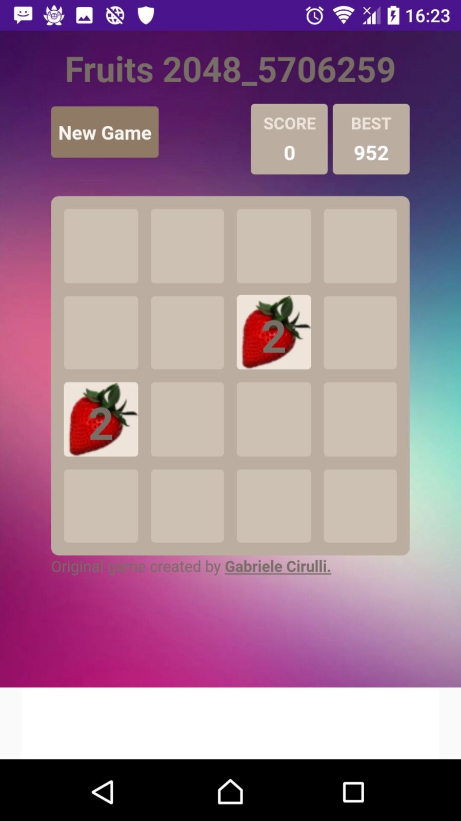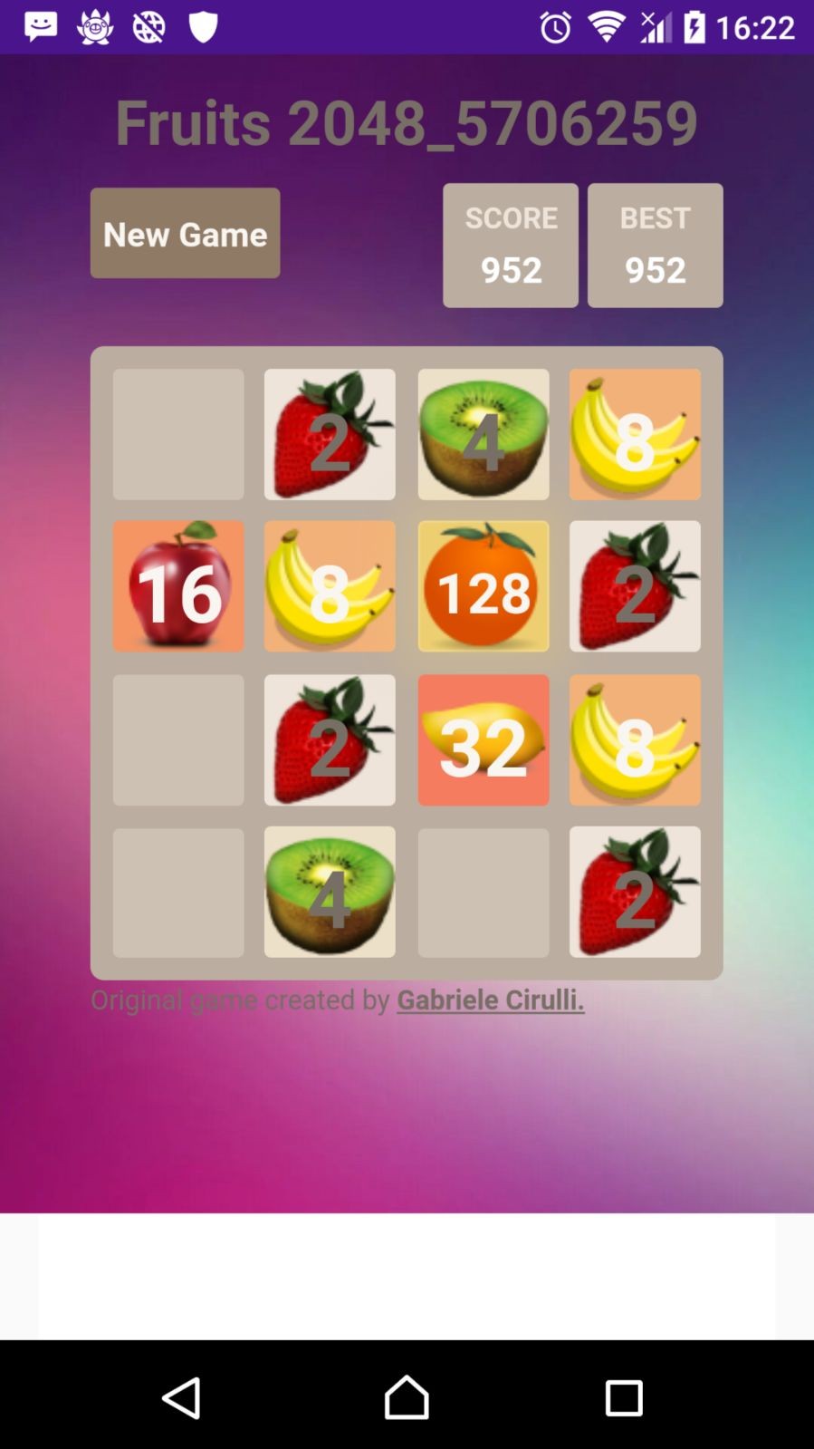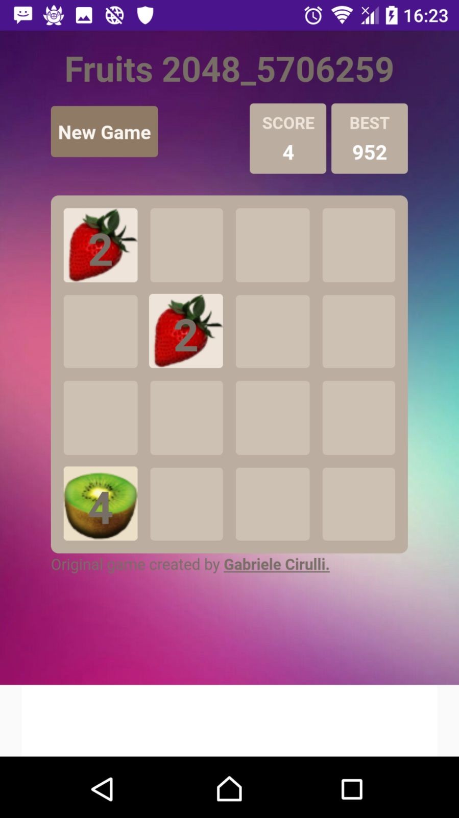 Swipe the fruit Up, Down, Left or Right to move. When two same fruits joined together,make them merge into one and transforms to another kind of fruit. Final achievement is to transform the fruit to another kind of fruit, just like 2048 game 2..4..8..16...1024.. 2048.