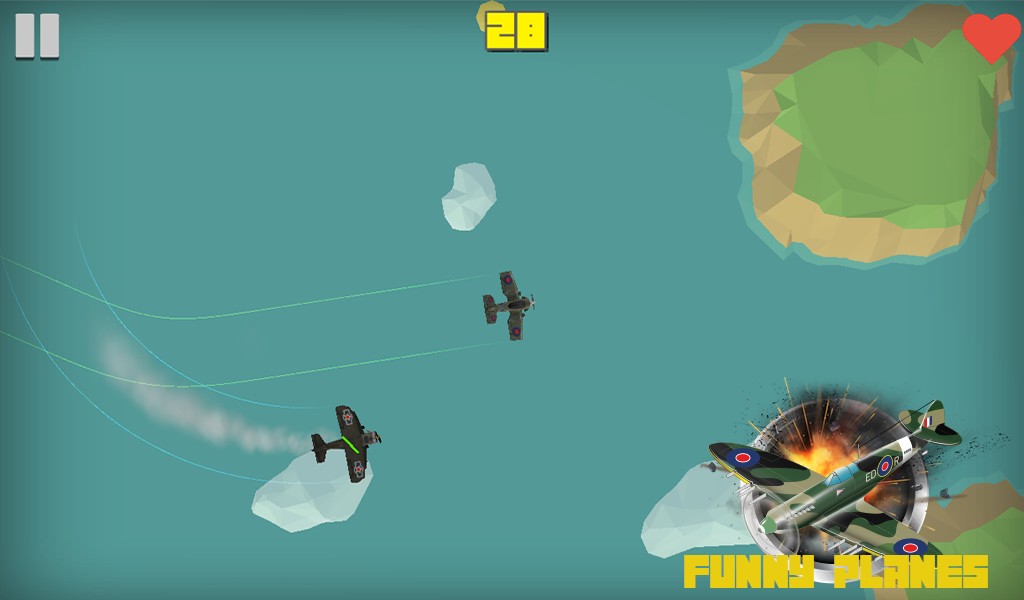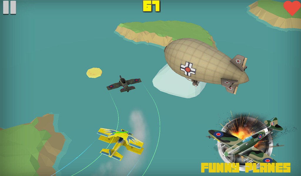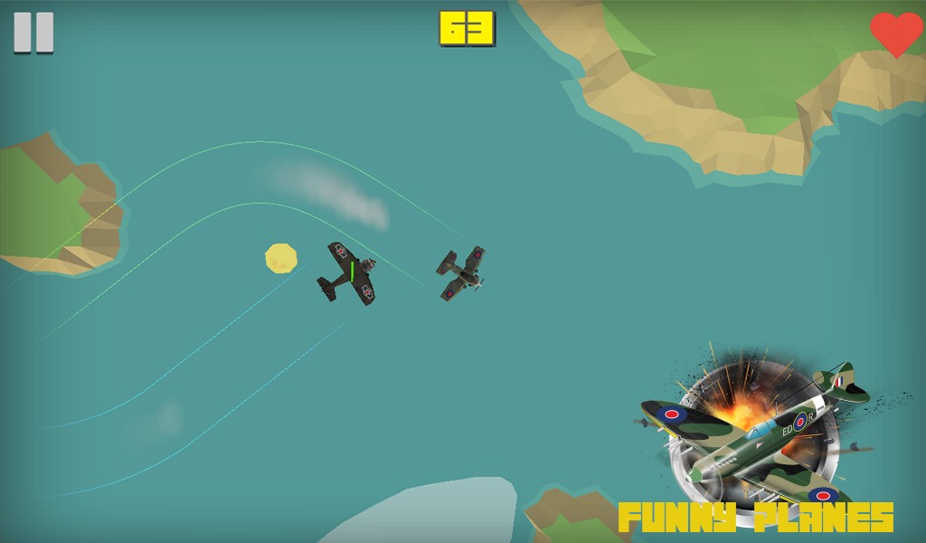 Funny Planes is a simple and fun game. You can collect different aircraft and expand your planes archive. In order to have a more advanced aircraft model, you must collect the gold that is suspended in the air. Faster and more flexible airplane models are waiting for you! Watch out for enemy planes! Some planes are too fast. Others can make very sharp turns. You can beat them with sharp turns. Mix their heads a little to hit each other.