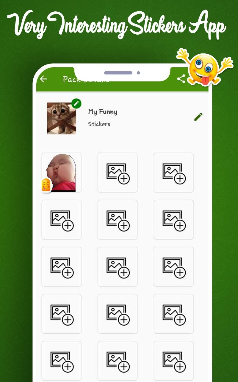 Funny Sticker Maker for WhatsApp is an amazing app for creating Funny stickers from your own photo for WhatsApp. You can create stickers from photos and add text, decoration items while using photos from Camera or from the picture gallery.