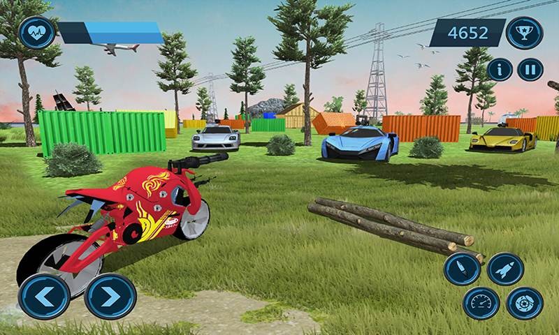 Futuristic bikes battleground game is open world battlefield simulator where you play as high-tech warrior motorcycle and smash everything in the combatant world. Jump from the battle plane in the arena and destroy your opponent’s cars, bike, and container to increase your surviving skills to improve your bike battle driving techniques.
