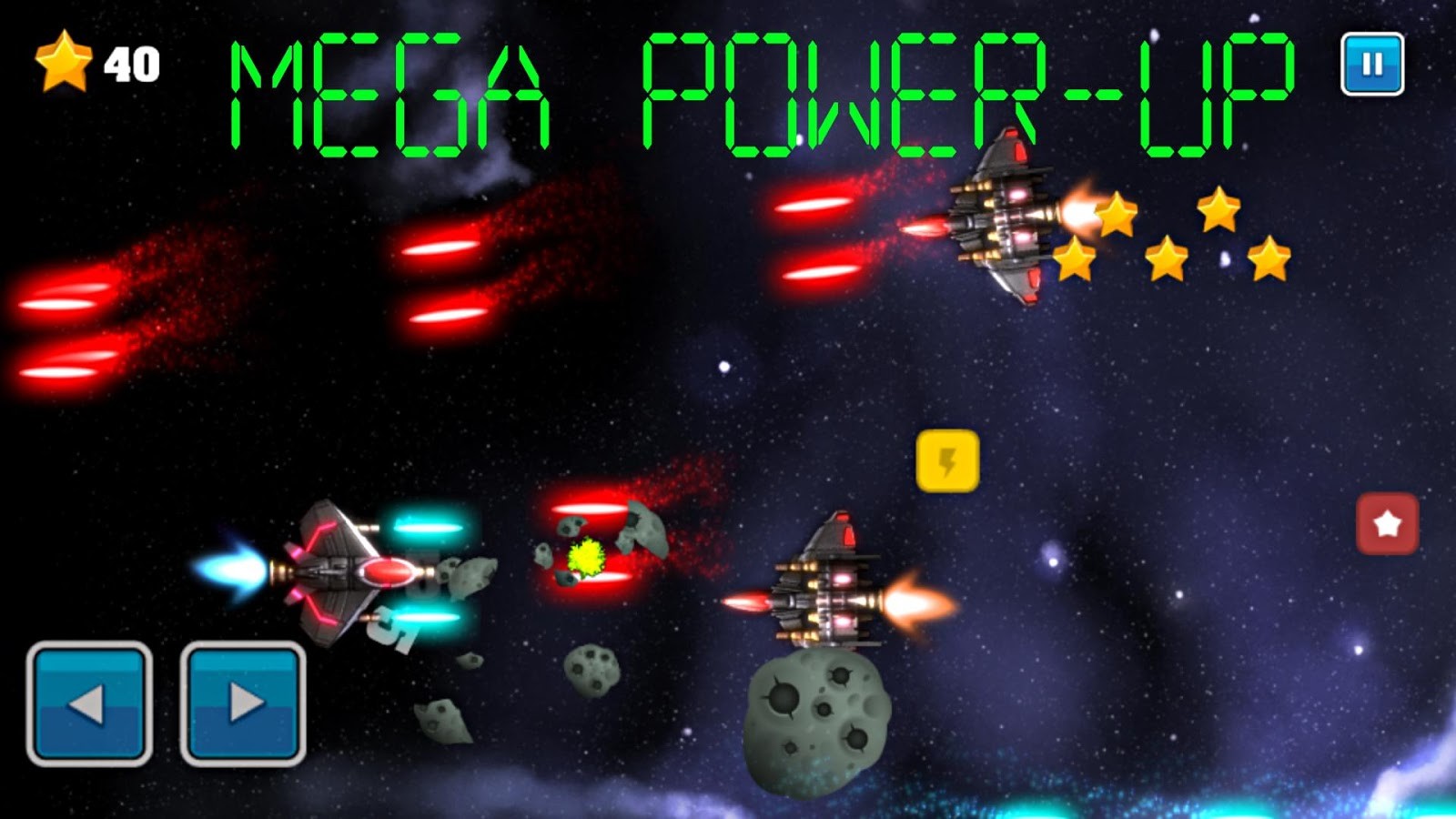 You will pick up stars around mars for extra points that You can spend in shop so You can buy more powerfull battleships to fight aliens