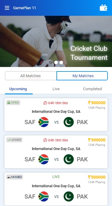 Gameplan11 is unique Fantasy Sports App platform to let the diehard fans to feel the reality of on-field experience. Choose your playing 11 or invite your friends to join your gang, create your own team and you are done! You can earn points based on their on-field performance of your selected players from your squad. Based on overall team performance, it will be ranked and put you in a winning position.