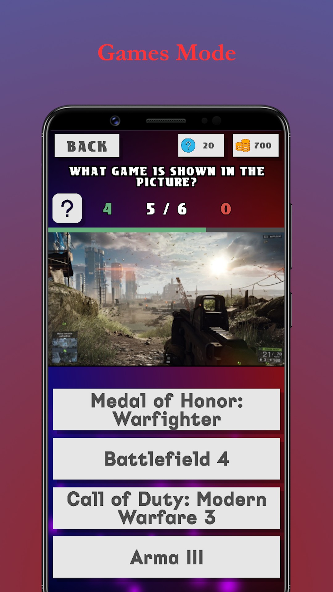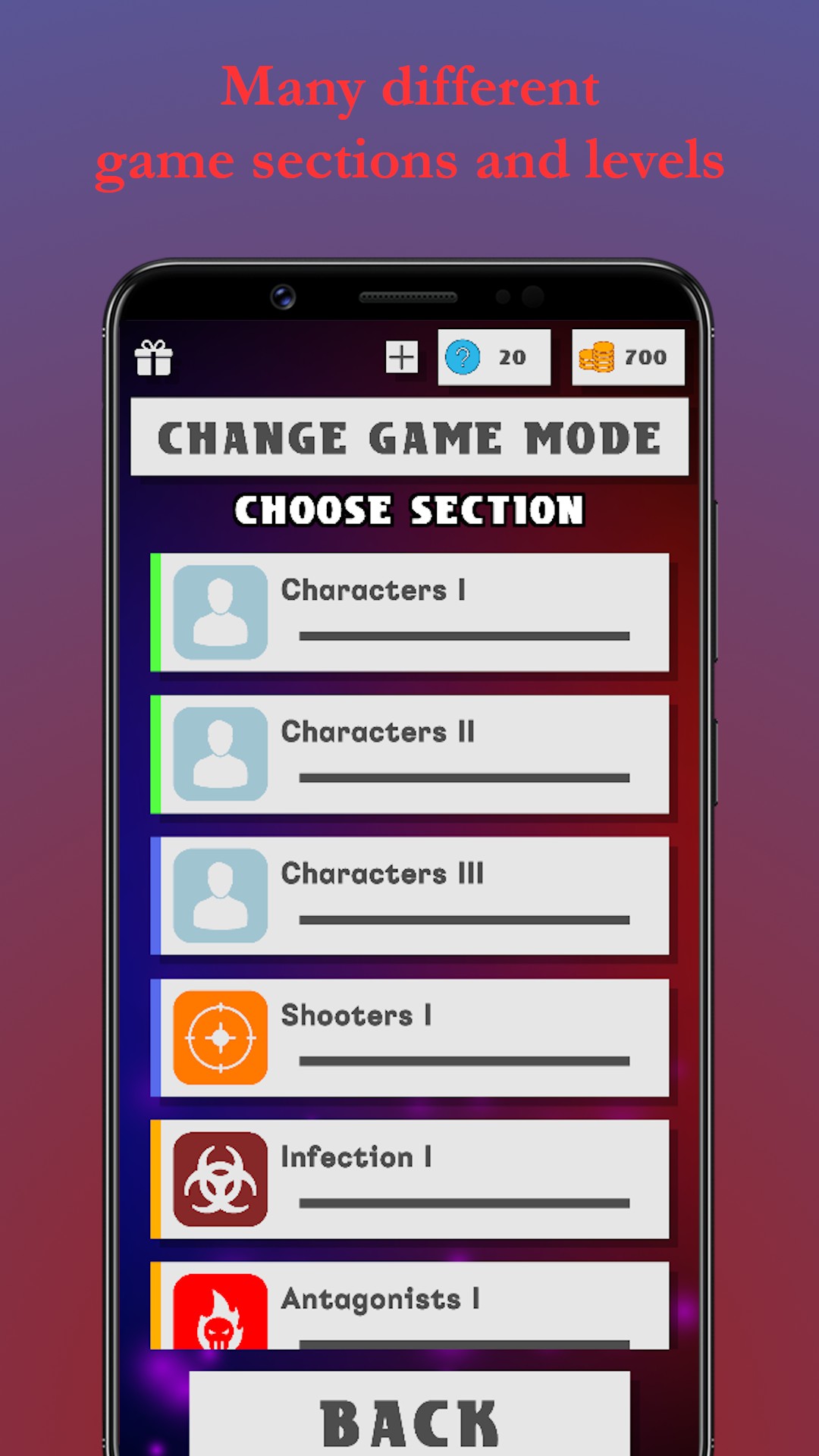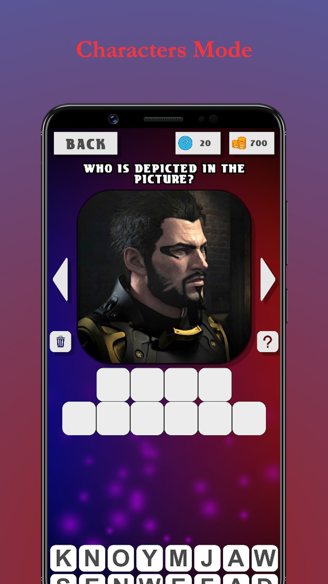 * Two modes: "Guess the character" and "Guess the game."