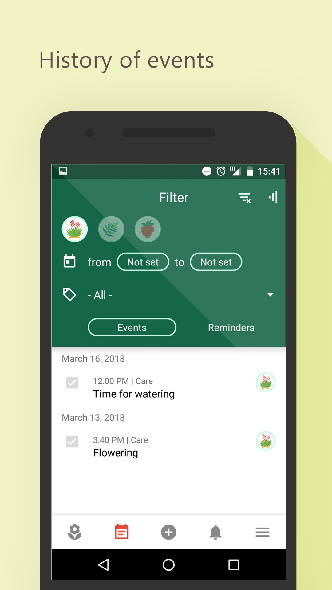 - grouping events for different categories(watering, cupping, transplantation etc.)