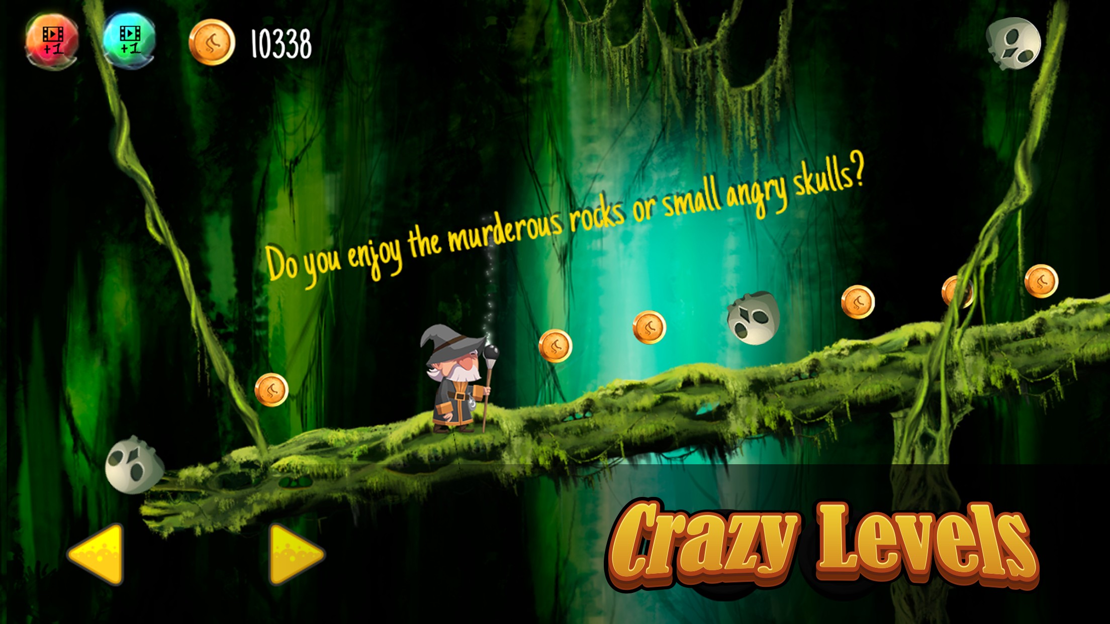 Run, jump and have fun with Gerald mage. Help him overcome challenges of skill, timing and puzzle on a journey of humor. Collect all the magical and customary coins to increase Gerald's level by increasing his powers. Collect PowerUp and discover secret rooms to explore.