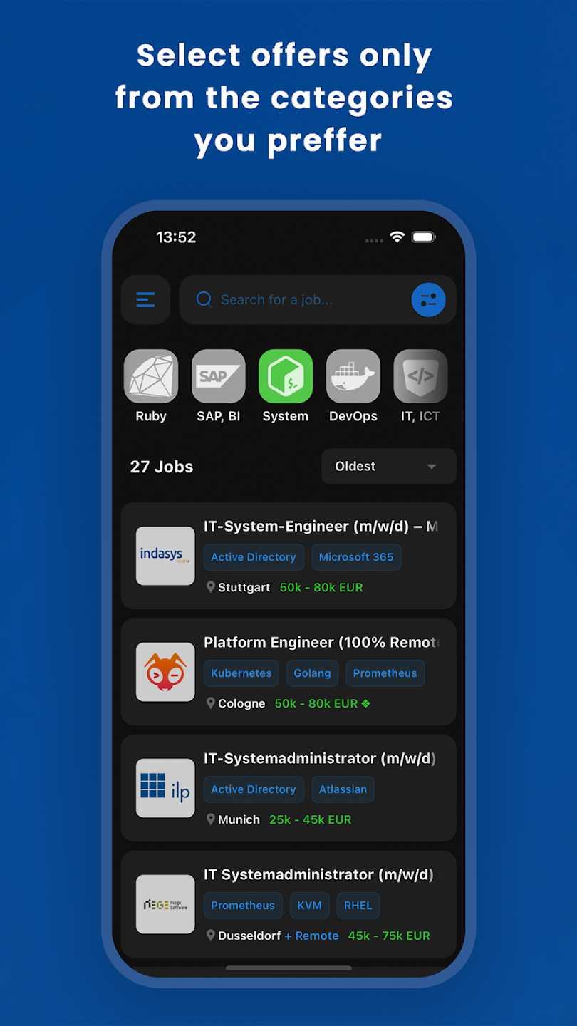 Explore IT and Software Developer jobs in Germany, including salaries and detailed tech stacks. Learn about the companies and apply directly through the app!