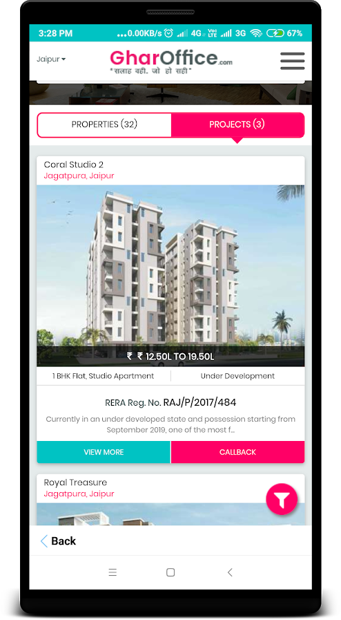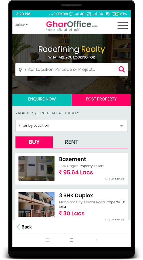 GharOffice.com property app is intelligently designed for buyers and sellers to buy or rent residential as well as commercial properties such as- Flats, Houses, Plots, villas, Penthouse, Shops and more. This app will help users to explore a wide range of property options to get their dream property in an easy and quick way. Also, users can now view photos, maps of properties, locations and so on, that will help them to choose the right property.