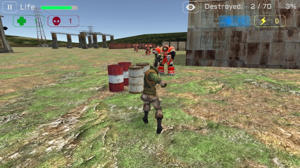 The war has started, we did not see it coming. Our enemies sent an army of powerful machines to destroy us. The Warbots have taken possession of many military and industrials zones. As a member of the elite military group, Ghost Squad, your mission is to recover this battle zone. Start fighting, destroy all Warbots or die trying.